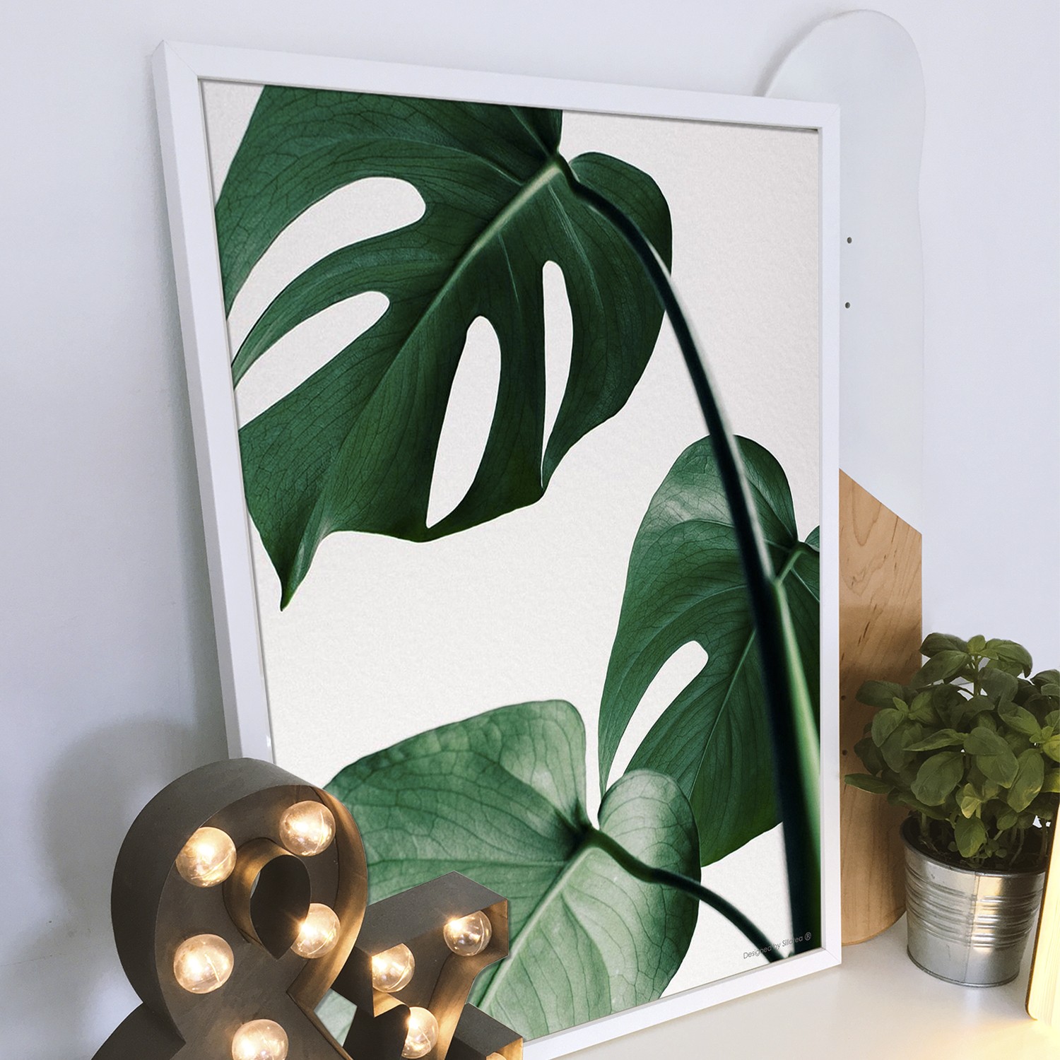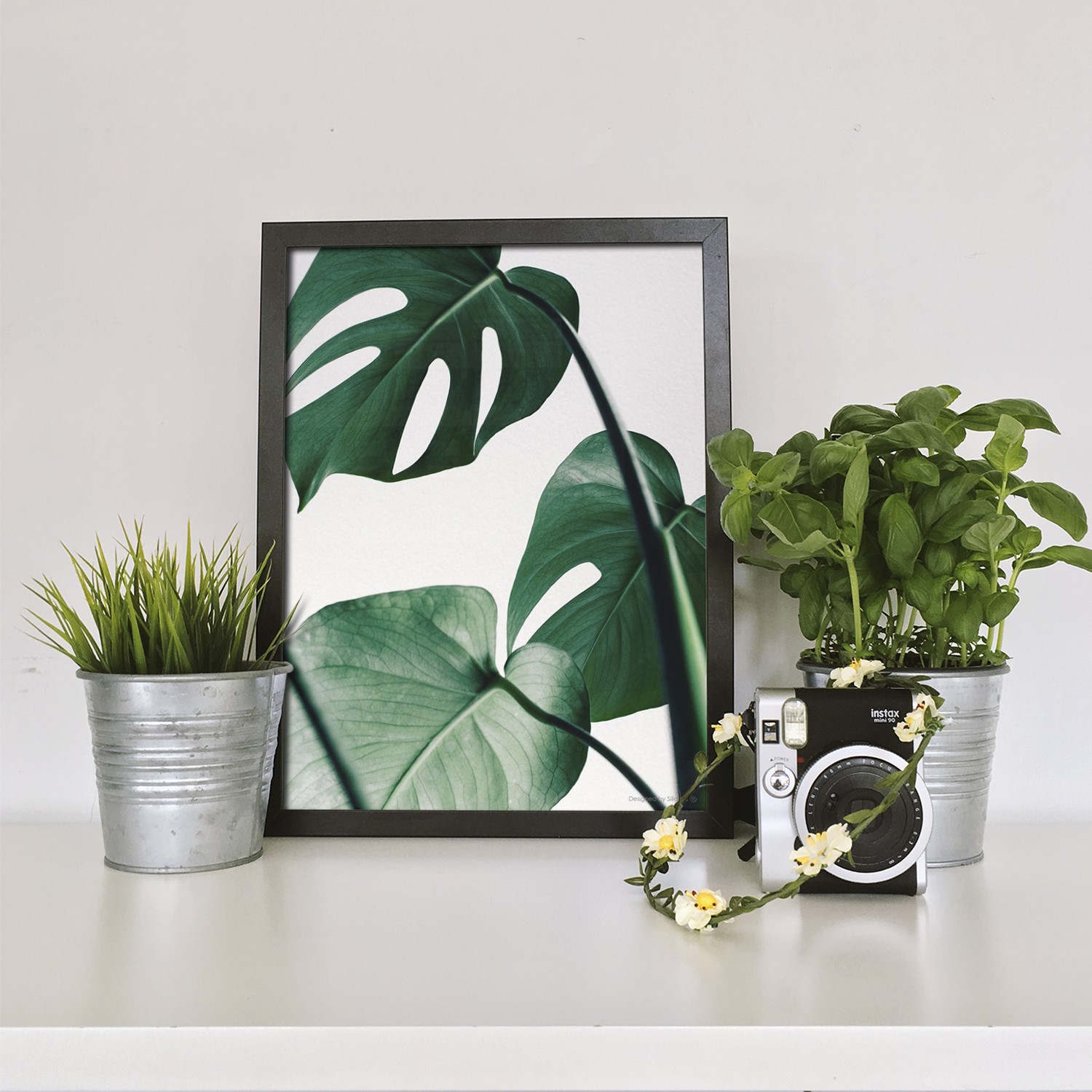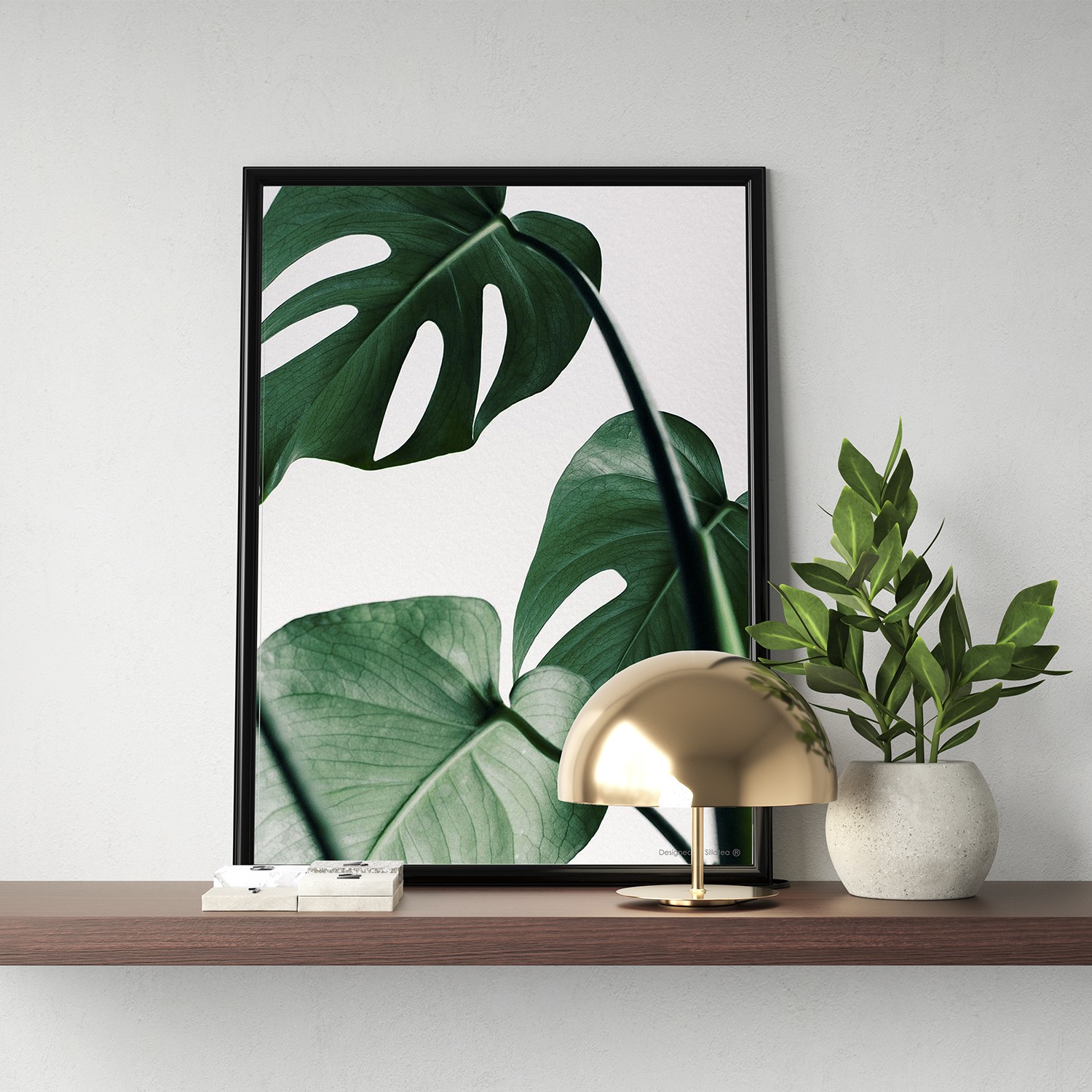La lámina con marco MONSTERA PLANTS está diseñada para colgar en la pared de forma bien sencilla, pero también puedes apoyarlo en estanterías o mesas, puede ser una buena opción como elemento decorativo de sobremesa.