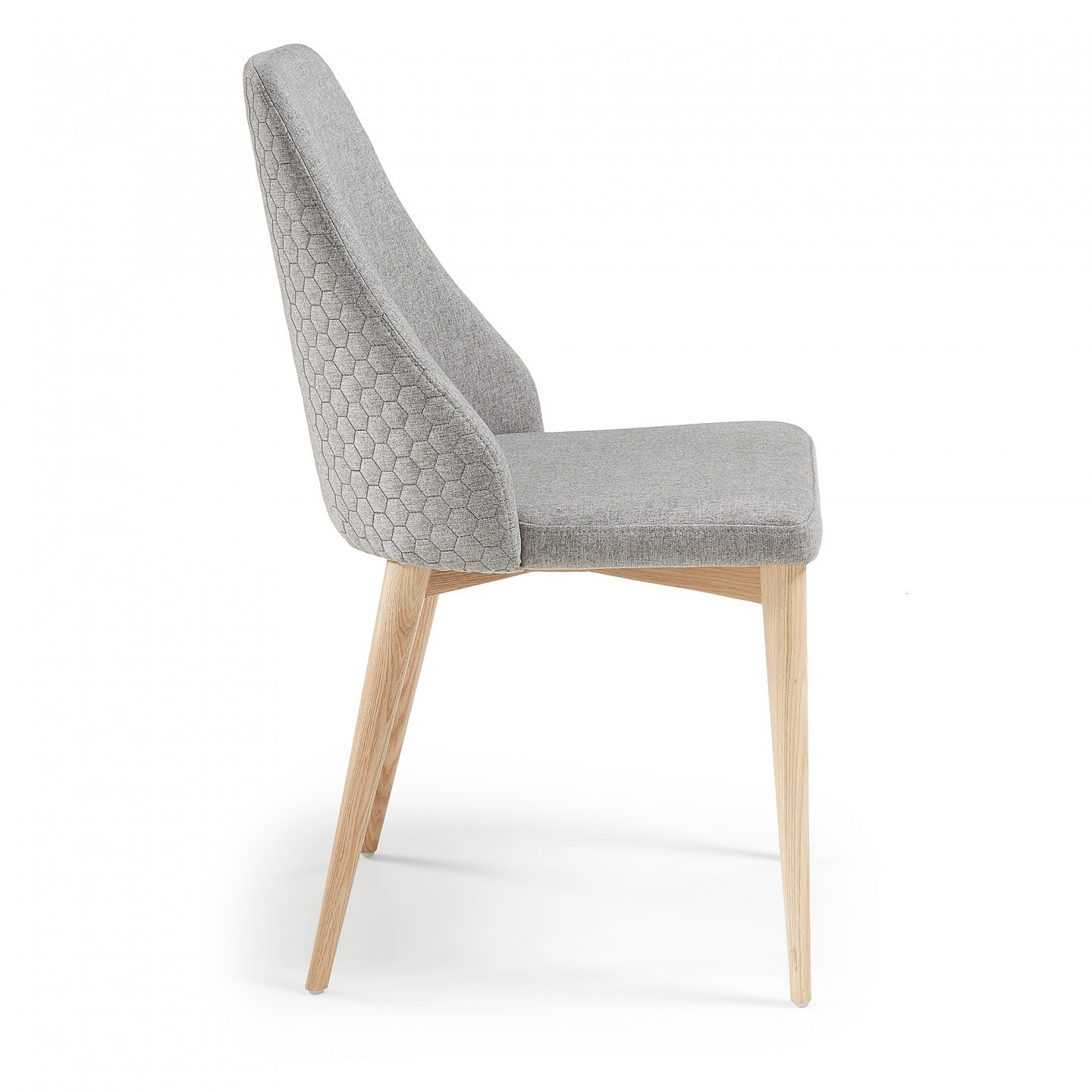 Silla de comedor en tejido gris claro y madera