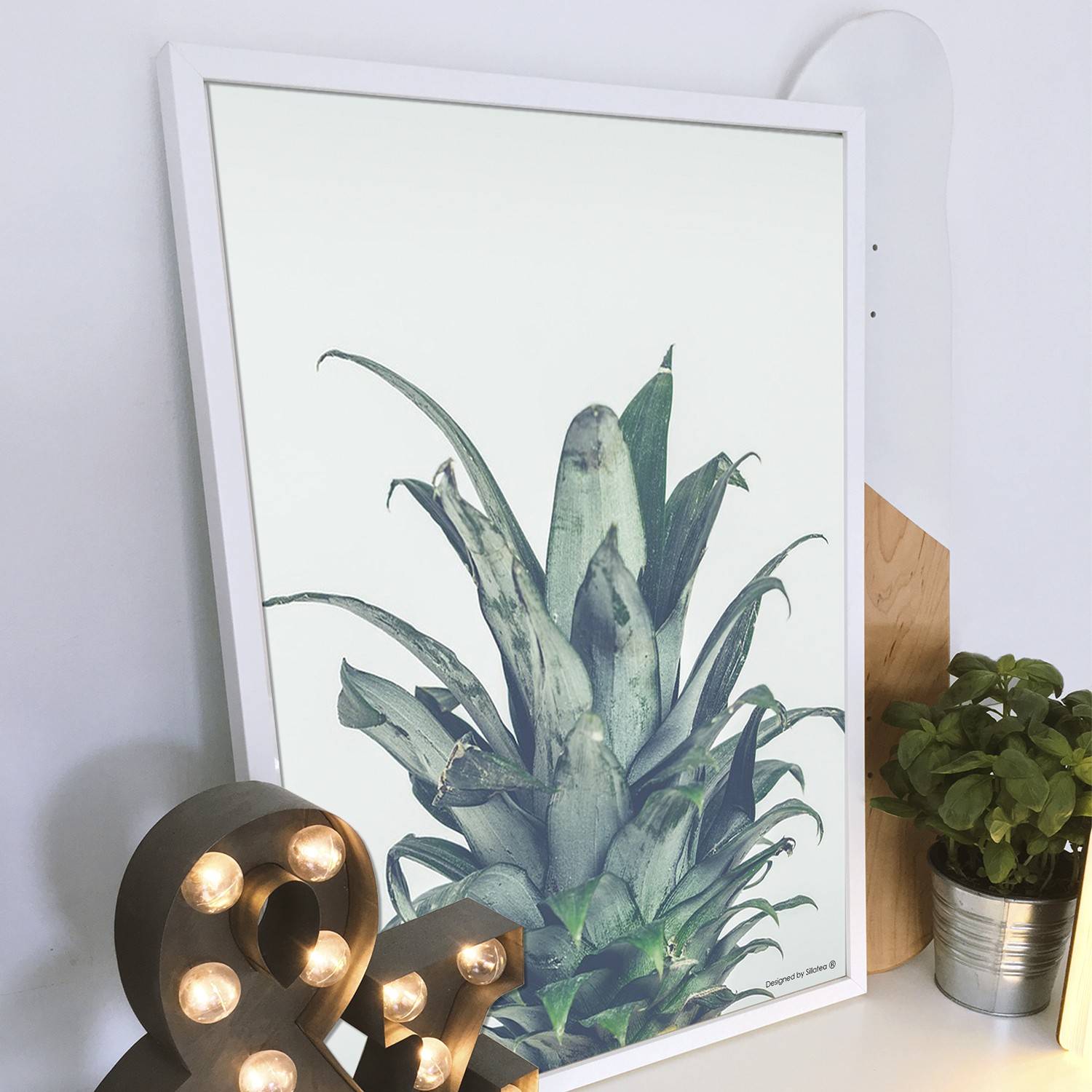 La lámina con marco PIÑA LEAVES está diseñada para colgar en la pared de forma bien sencilla, pero también puedes apoyarlo en estanterías o mesas, puede ser una buena opción como elemento decorativo de sobremesa.