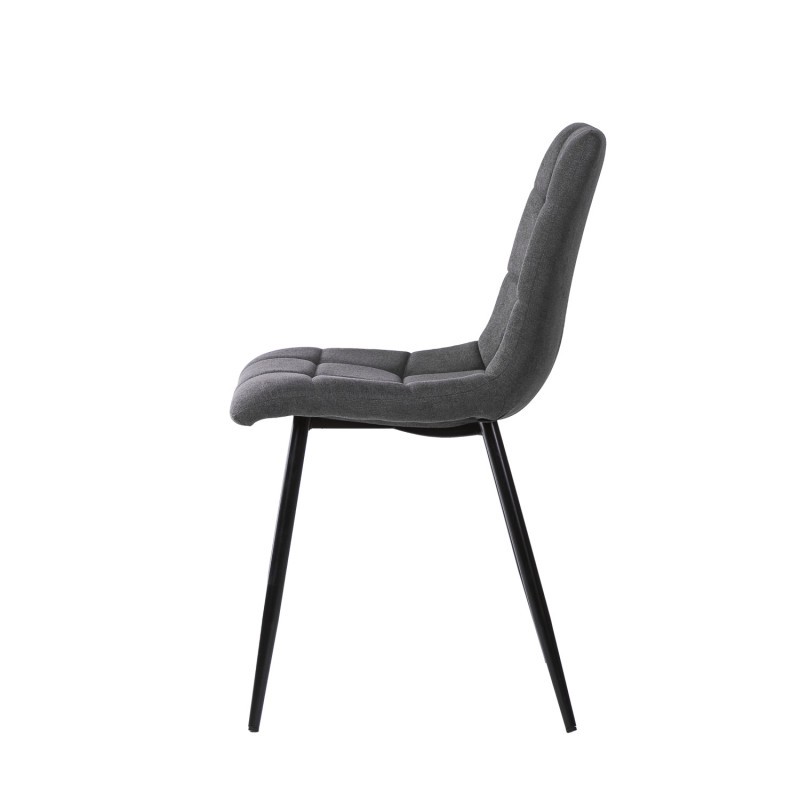Silla de comedor en tejido gris oscuro y metal negro.