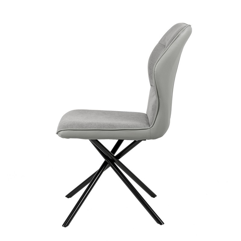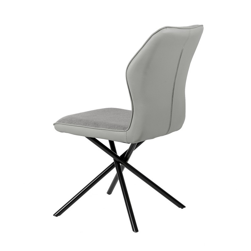 Silla de comedor en tejido y polipiel gris claro, metal negro.