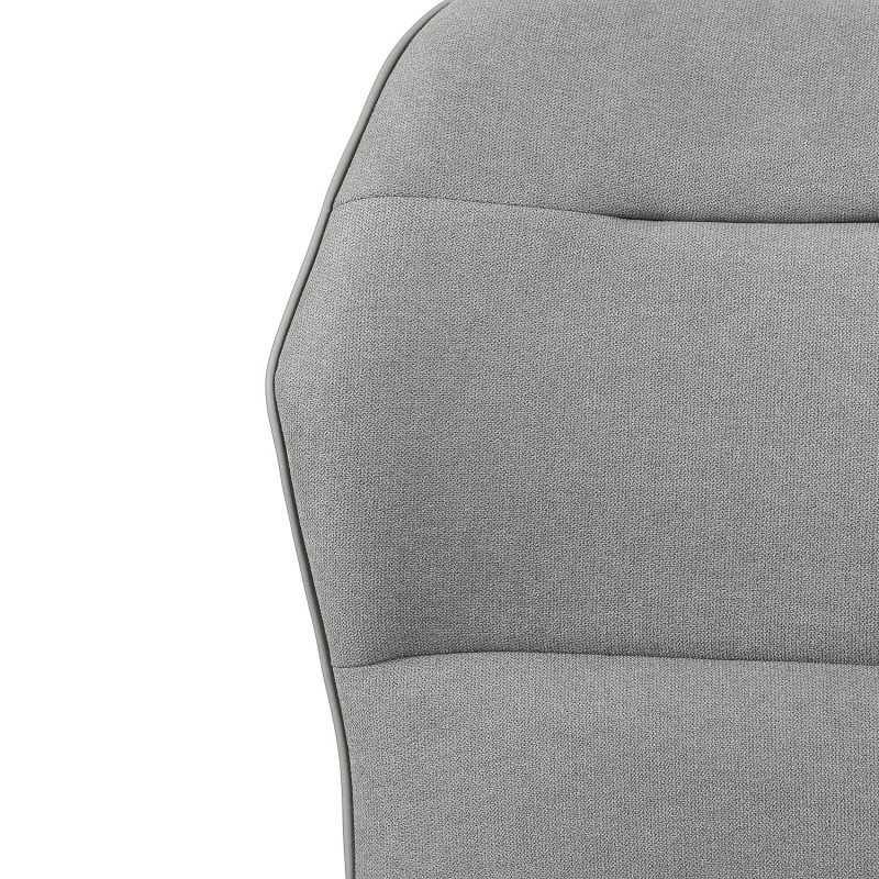 Hablamos de un modelo moderno, formado por un respaldo en ligera forma pentagonal y un asiento, ambos tapizados en tejido en su cara interior y polipiel en su cara exterior, siendo el gris claro el color del acabado en los dos casos.