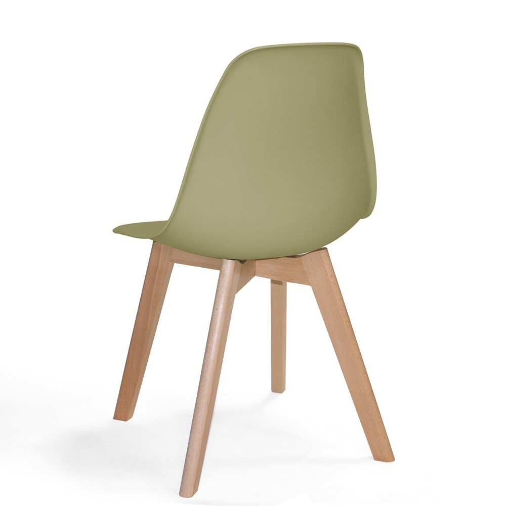 Podemos hacer un gran cambio en nuestra decoración con solo cambiar las sillas. Con este modelo en color verde caqui, crearás un ambiente distinto, es un color muy suave y fácil de combinar con tonos de madera natural y blancos.