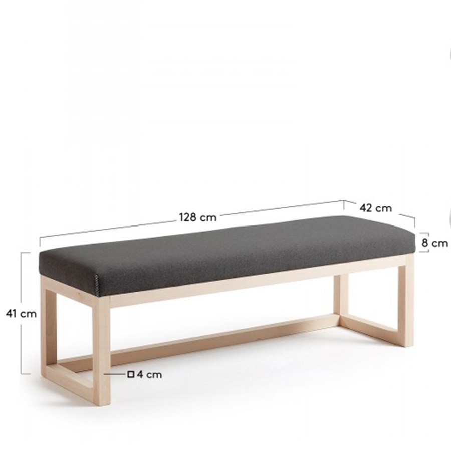 Banco ANTOPA 128x42 diseñado en tejido de color grafito y pies de madera de haya. Medidas: Medida alto: 41 cm. Medida ancho: 128 cm. Medida profundo: 42 cm.