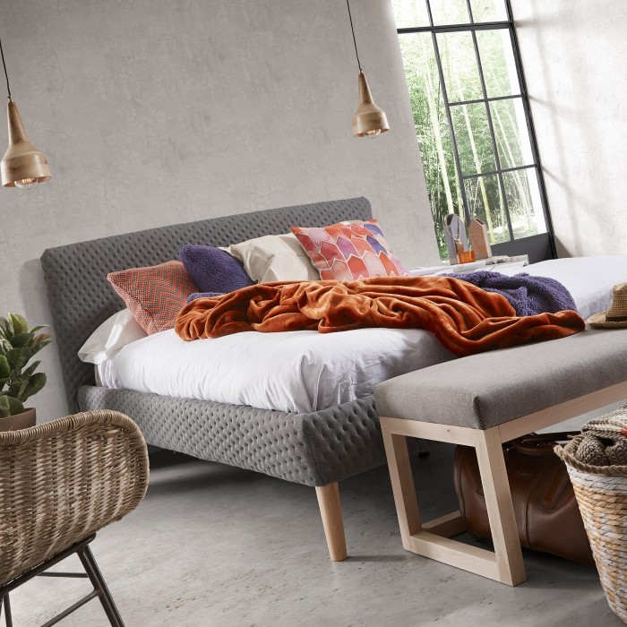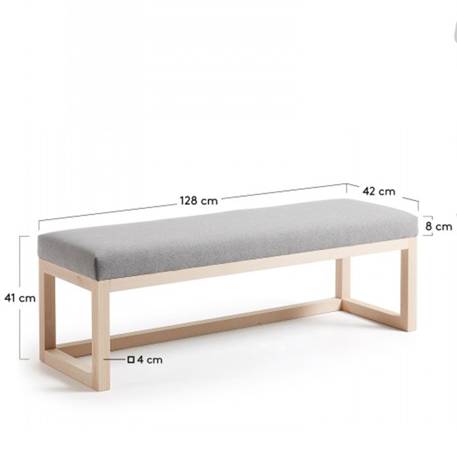 Así pues, tienes la opción de adquirir el banco ANTOPA, un modelo que supera el metro y veinte centímetros de longitud, tapizado en tela Varese, tratada para evitar que se manche con facilidad, y acompañada por una estructura de madera natural de haya, lo que supone un aporte de estabilidad y firmeza.