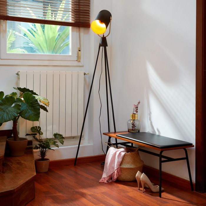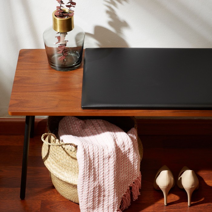 Dispone de un cojín en polipiel oscuro, que no ocupa la totalidad del sobre, si no que deja una pequeña parte para que puedas dejar el bolso.