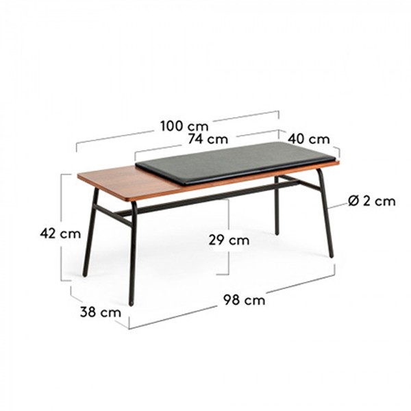 Y es que gracias al banco TURKOGLU vas a descubrir una nueva variante, bastante desconocida, pero que te va a gustar. Cuenta con una estructura formada por cuatro patas metálicas en color negro que se encargan de sostener un sobre rectangular, de un metro de longitud y realizado en madera chapada de nogal.