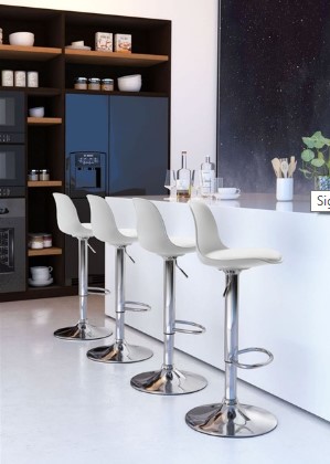 Un modelo de estructura cromada y asiento tapizado en polipiel, un taburete sencillo, elegante y combinable en diferentes estilos.