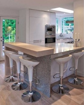 Si es vuestra situación será muy útil que tengáis 2 o 3 taburetes, ya que son los asientos ideales para este tipo de barras. A parte de ser prácticos y cómodos, no ocupan demasiado espacio y al ser regulables en altura son fácilmente ocultables bajo la barra de la cocina, una gran ventaja también para los comensales de ciertas alturas para que puedan disfrutar sin problemas de una buena comida y tertulia.