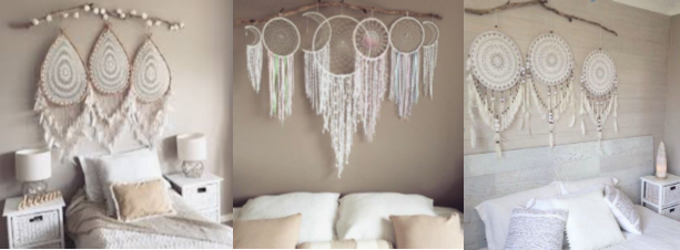 Actualmente, los atrapasueños son una buena idea a la hora de decorar, tanto dormitorios como cualquier estancia de tu hogar. Los podemos encontrar en multitud de objetos, en cuadros, en vinilos, pintados directamente en la pared; en solitario o juntando varios formando cabeceros espectaculares que crearan un ambiente relajante e ideal para un perfecto descanso.