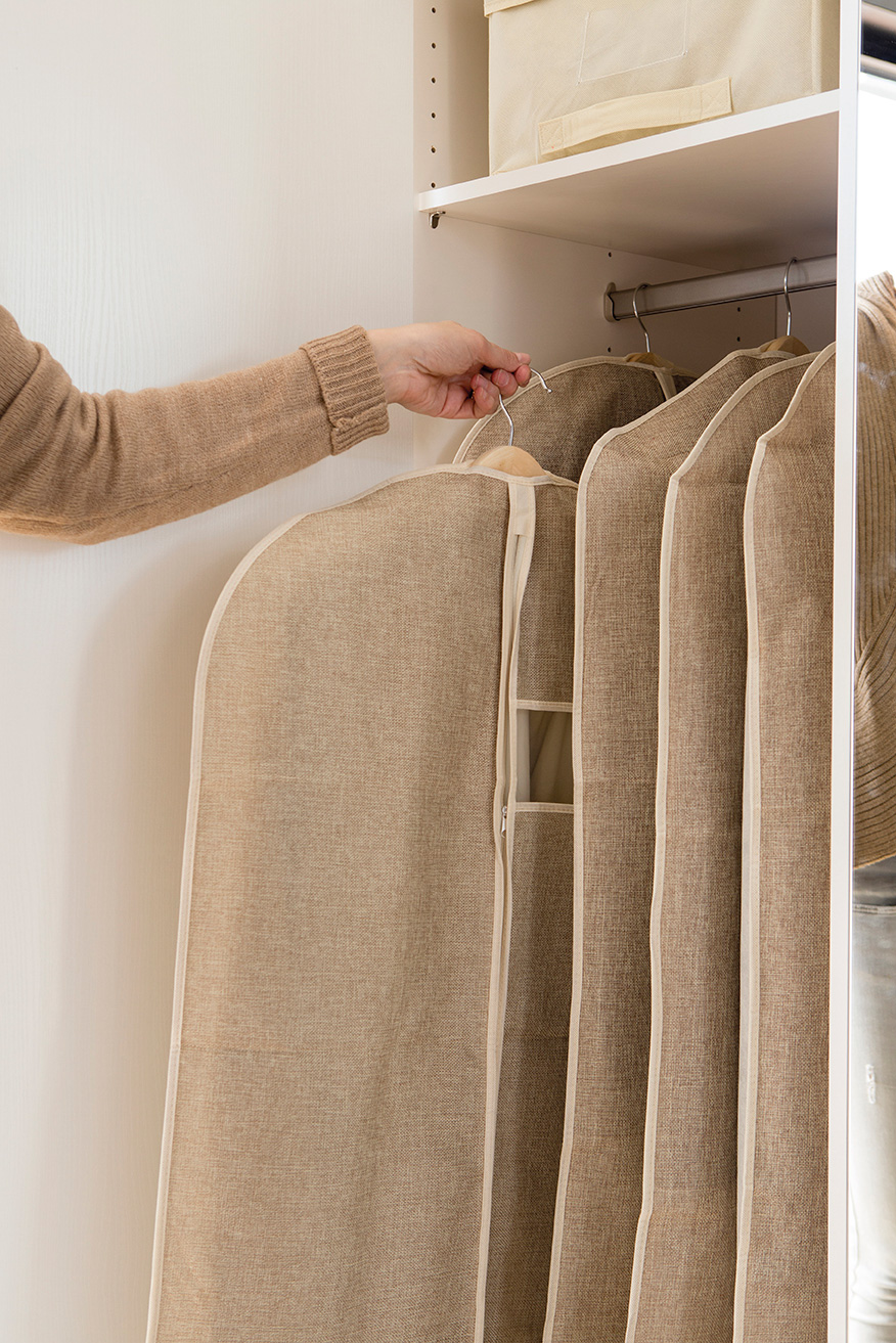 Las fundas son perfectas para que abrigos o trajes no se llenen de polvo. Las de plástico y con cremallera resultan más prácticas. La ropa de cama y los jerséis de lana, que abultan más los puedes guardar en bolsas de vacío, que tienen capacidad y apenas ocupan. Reserva la zona del maletero (parte superior del armario) para guardar la ropa de cama y los jerséis más gruesos.