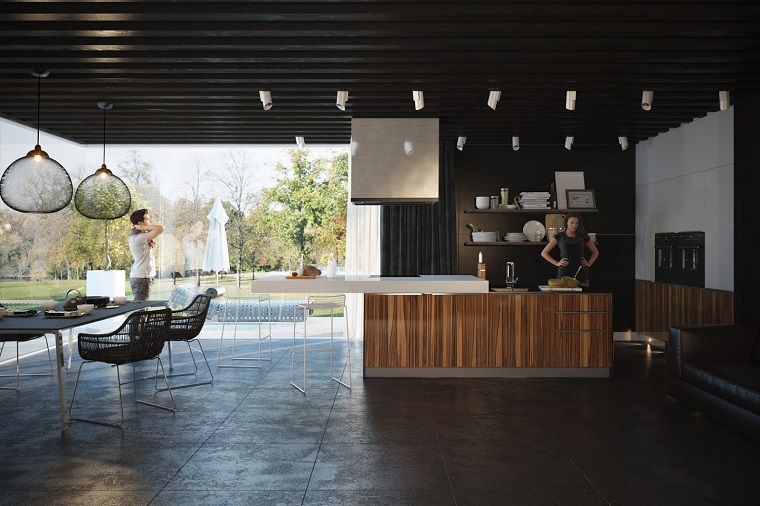 Aunque siempre hemos vinculado la pintura de techos con el color blanco, e suna tendencia a la alza el hecho de pintar los techos con el mismo color que todas las paredes de la estancia o utilizar un color de una de las paredes para continuar en el techo, de este modo conseguimos un efecto de amplitud y originalidad. También se utiliza el color negro o colores muy oscuros para pintar el techo y disimular cableados o tuberías, es una buena técnica que encaja perfectamente con tendencias industriales o minimalistas.
