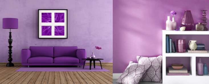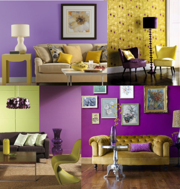 Para los más atrevidos podemos combinarlo creando contrastes, introduciendo el violeta combinándolo con su complementario amarillo. Obteniendo ambientes de lo más original y atractivos.