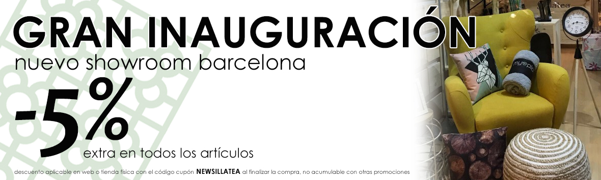 Además por motivo de la inauguración te regalamos un 5% de descuento en tus compras superiores a 100 euros (IVA y transporte no incluidos) hasta el 17 de Noviembre con el código cupón NEWSILLATEA, válido tanto en compras online como en nuestros Showroom.