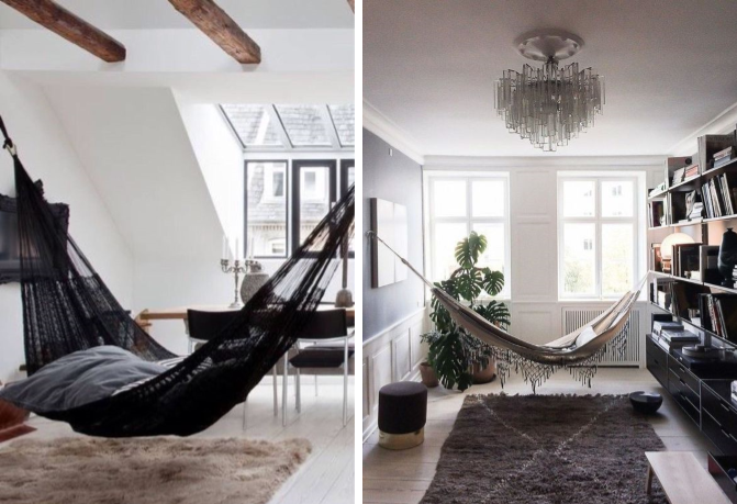 Estas hamacas son un elemento para el hogar muy práctico ya que ocupan poco espacio y se cuelgan y descuelgan fácilmente.