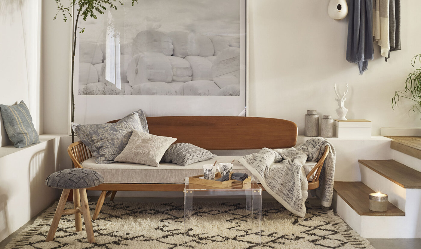Sobre el respaldo, en un brazo o doblada en una cesta de fibra o de fieltro. Junto a un cojín bien cómodo, no te podrás resistir a una estampa como esta.