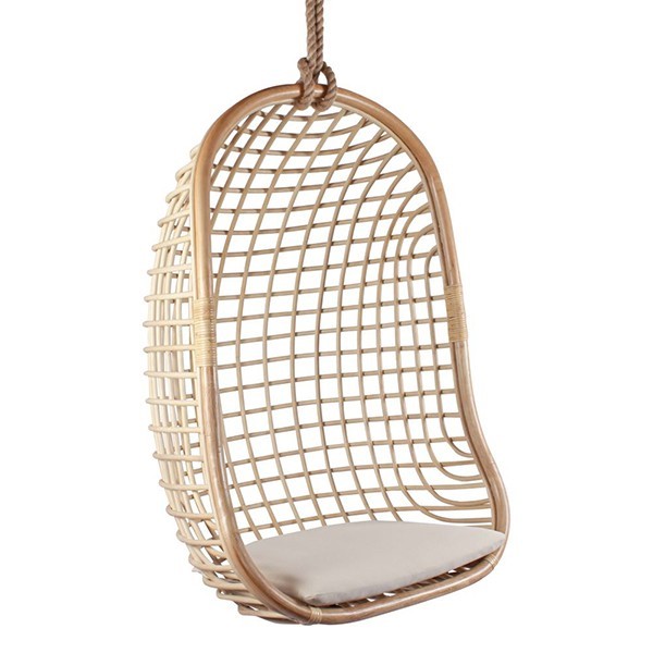 Si prefieres un diseño que se centre en todos los detalles sin duda es la silla colgante REIMS. Está fabricada en rattan semicepillado y trenzado de forma natural. Va acompañado de un cojín en tejido blanco para mayor confort. También incluye una cuerda y mosquetón para su correcta fijación al techo. Imagina lo bonita que quedará en tu dormitorio, en tu salón, en tu porche. Sea donde sea acertarás si eliges este bonito modelo, eso sí, prepárate para que tus visitas no te dejen sentarte en ella.