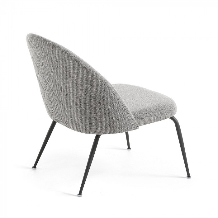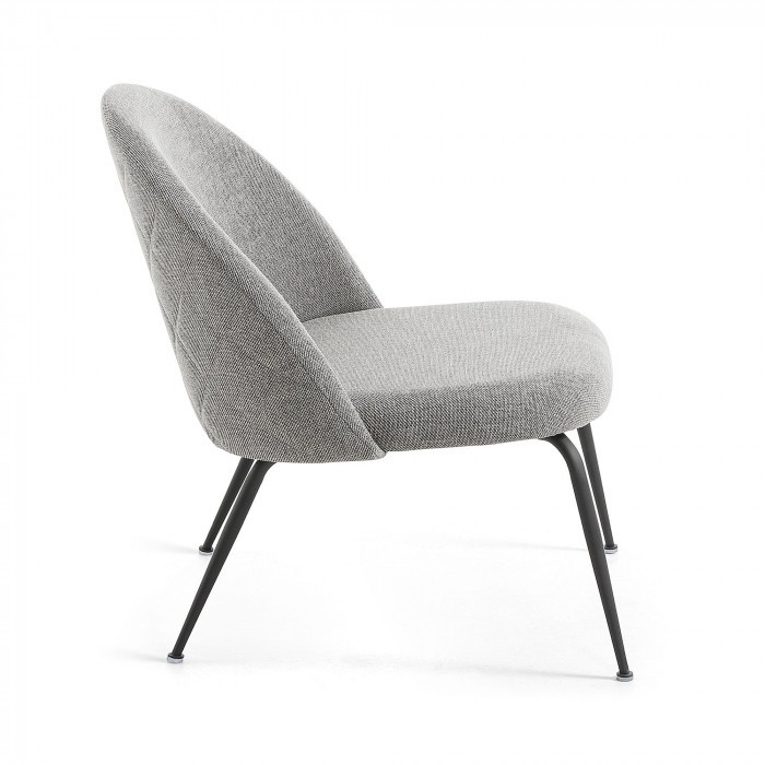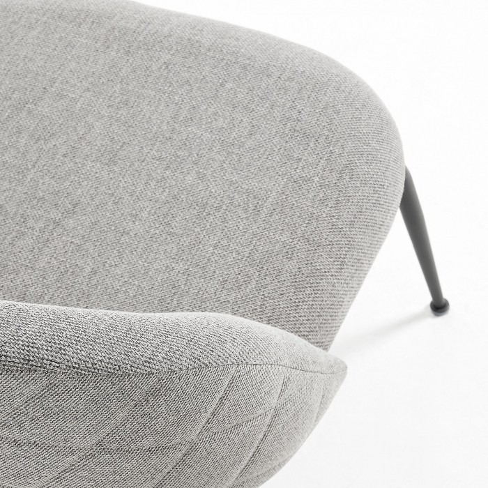 Hablamos de un modelo destinado a todo tipo de salones y comedores. Consta de un asiento tapizado en un precioso tejido en color gris, siendo cuatro patas de metal en acabado pintado en negro las encargadas de sostener dicha estructura.