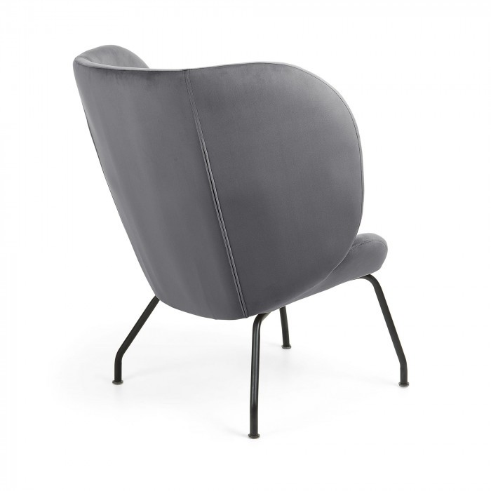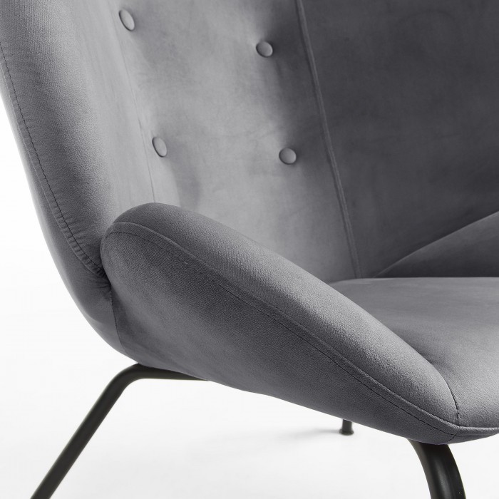 Butaca LEEDS diseñada en tejido aterciopelado en color gris oscuro con botones decorativos.