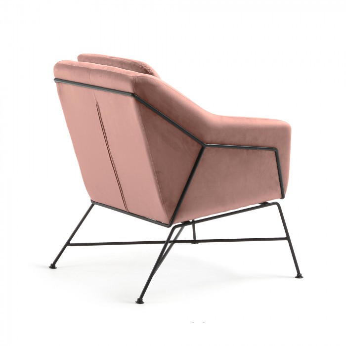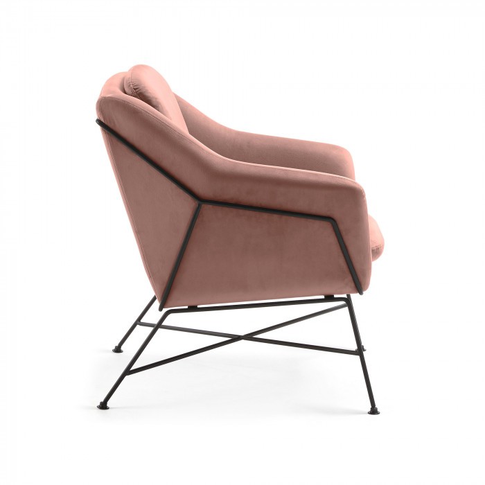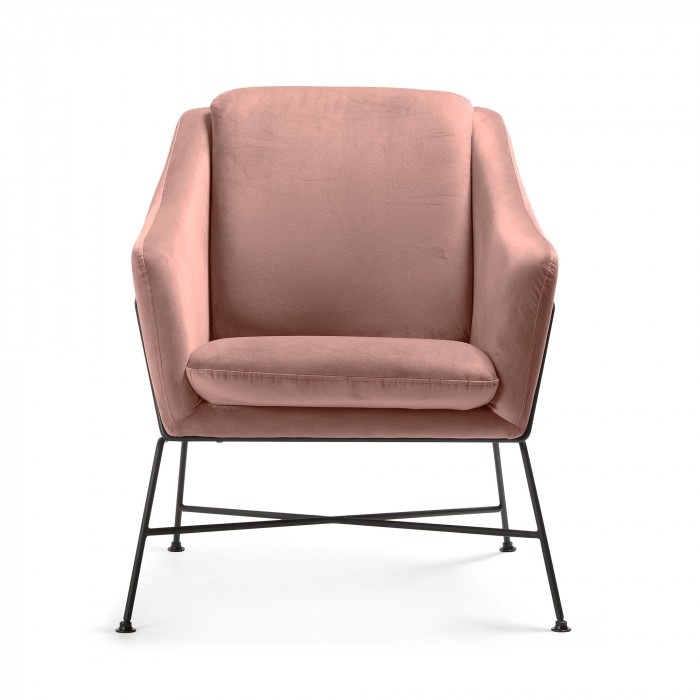 Butaca SPEECH de terciopelo rosa claro con estructura de metal en color negro. Medidas:  Medida alto: 82 cm. Medida ancho: 68 cm. Medida profundo: 73 cm.