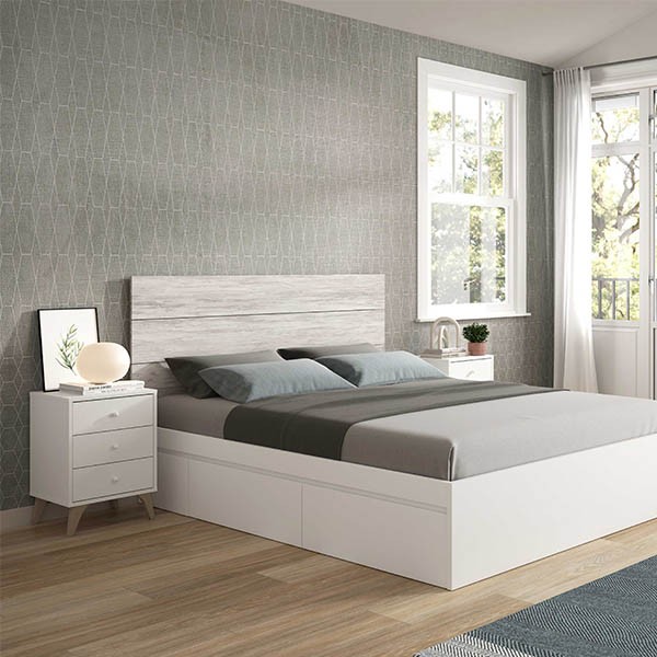 Cabezal con dos mesitas SONNER – melamina Blanco