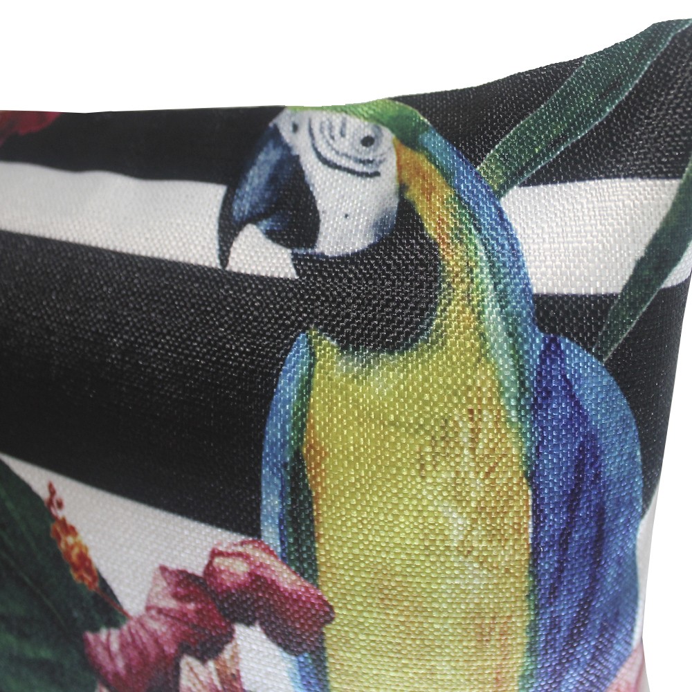 Un estampado de estilo tropical para decorar con loros y flores tu sofá, sillón o cama.