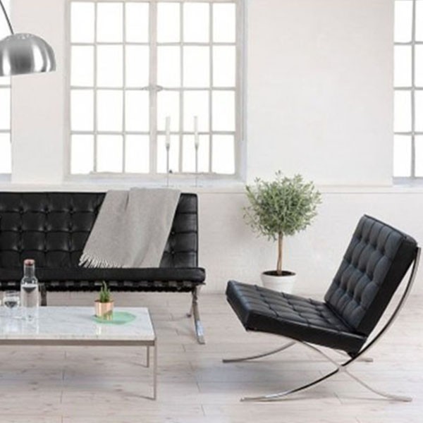 En este caso te traemos un sillón y ottoman a juego, inspirados en la silla BARCELONA de Van der Rohe.