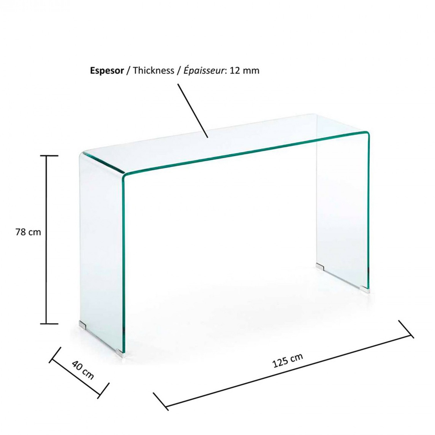 Hemos pensado en la entrada, con algún objeto decorativo encima, pero la consola BURANO GLASS es tan bonita que quedará bien allá donde decidas colocarla. Diseñada íntegramente en cristal templado transparente, sus lineas bien cuidadas dan forma a un modelo que se asemeja a la letra "U" invertida.