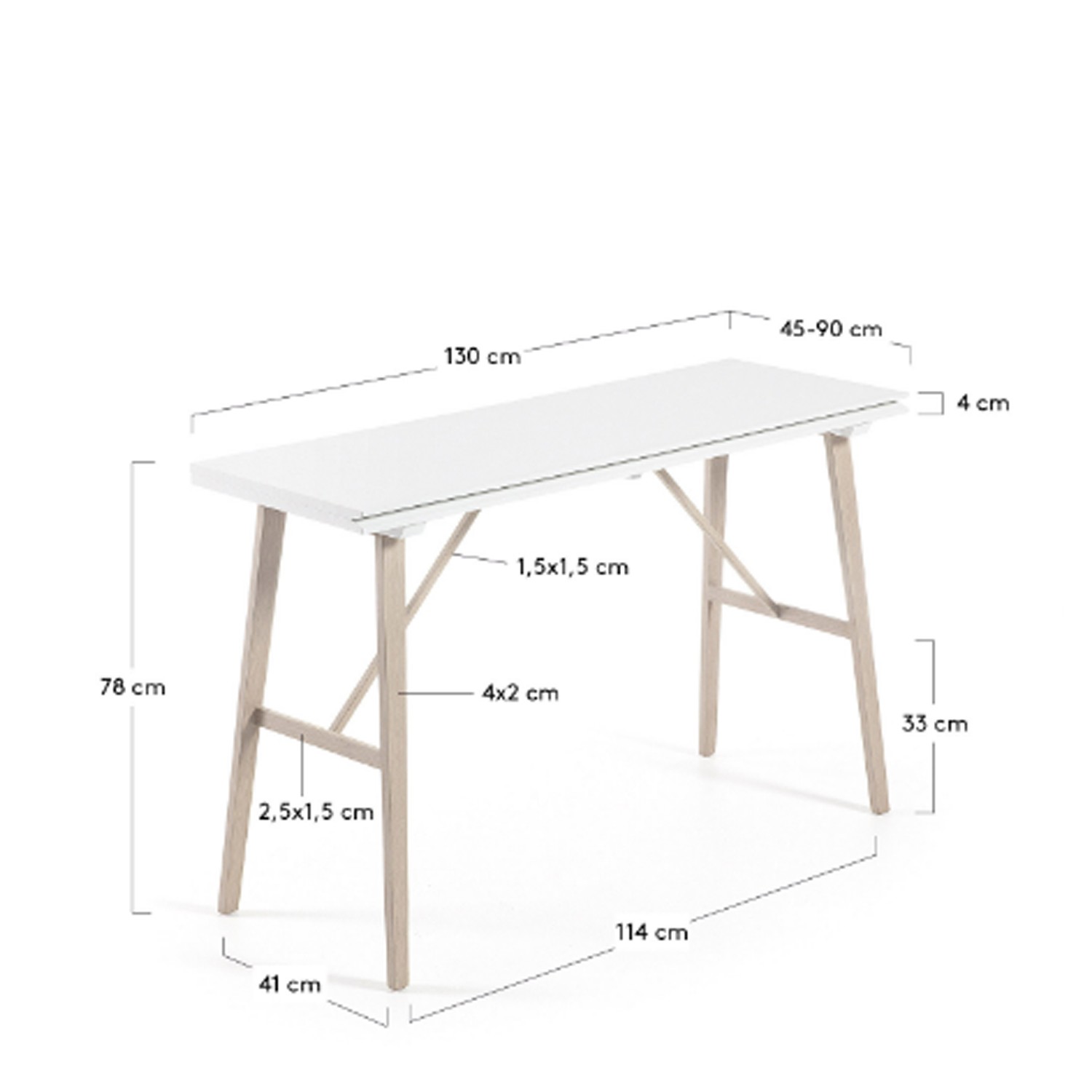 En esta ocasión damos a conocer la consola extensible VILNA. Se trata de un modelo formado por un sobre de madera lacada en color blanco. Cuenta con la peculiaridad de poder ampliar sus dimensiones. Así pues, de los 45 centímetros iniciales, su tamaño puede doblarse hasta alcanzar los 90 centímetros. Y todo ello se sostiene mediante cuatro patas, también de madera, pero en este caso, presentadas en estado natural.