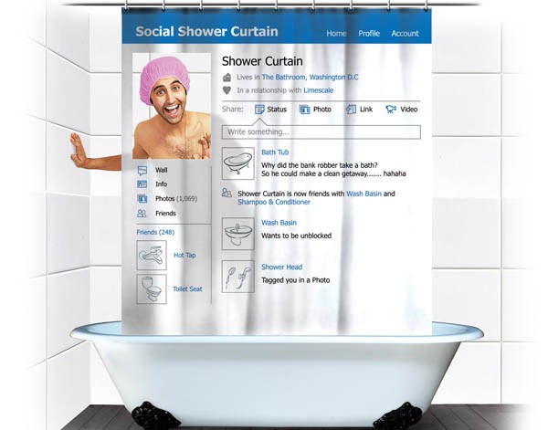 La más original de las cortinas para ducha o bañera. El regalo más imprevisible y divertido para aquellos que quieren disfrutar también en el baño de las redes sociales. Fabricada en tela impermeable con una ventana transparente para ser tu mismo el perfil de tu página mientras te aseas. Incluye 12 ganchos para colocar en cualquier barra tanto recta como doblada. Seguro que te encantará bañarte o ducharte con un ambiente único.