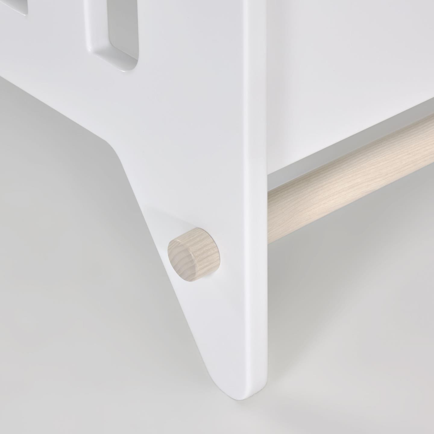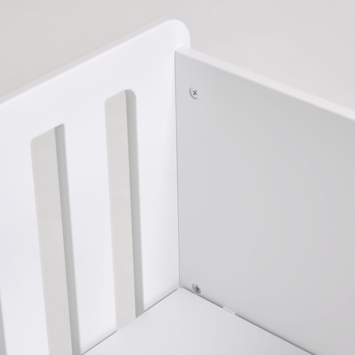 Pensada para estilos románticos, nórdicos y minimalistas por sus tonos suaves como el blanco y el color natural de la madera. Realizada en melamina de alta calidad lacada en blanco con toques en madera natural, como sus ruedas, para que puedas colocarla con facilidad.