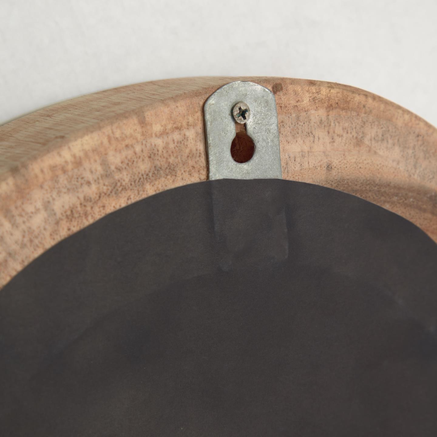 Se trata de un espejo de forma irregular, que nos puede recordar al corte de un tronco de árbol. Ha sido diseñado en madera maciza de teca, con un acabado natural, permitiendo ver las imperfecciones propias de la madera.