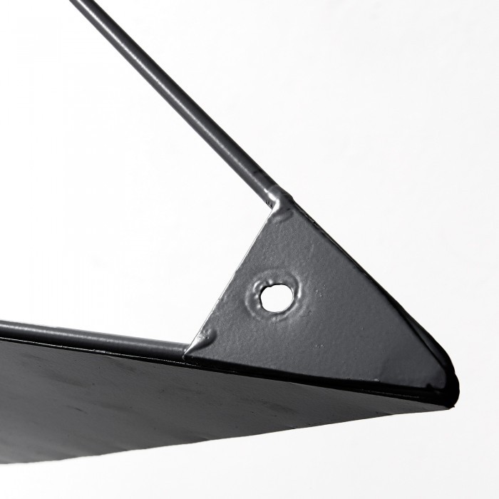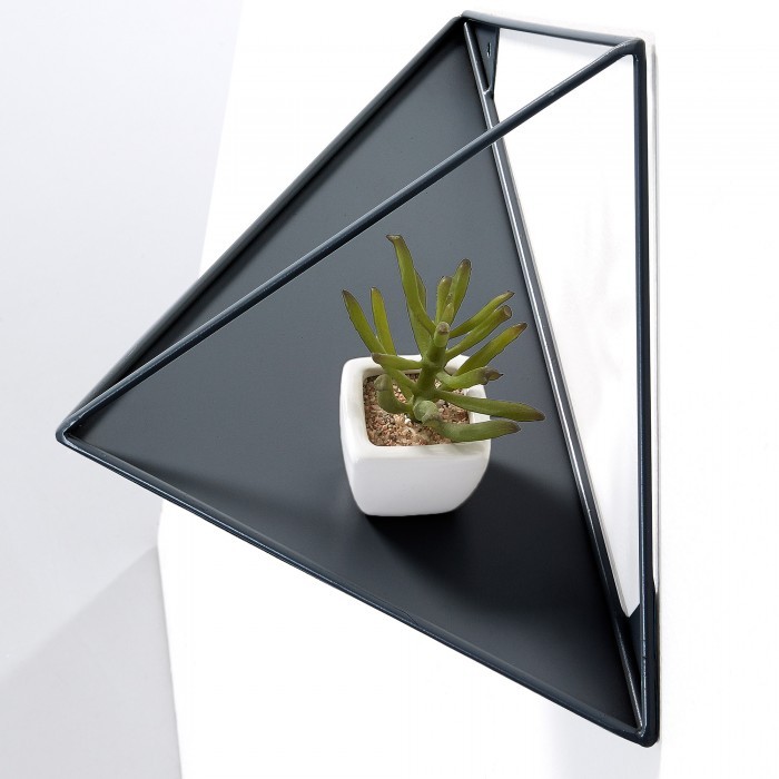 Y es que se trata de un modelo de pared que se presenta en forma triangular, diseñada en metal pintado en color negro. De pequeño tamaño, tiene cabida en todo tipo de estancias, ya sea salones, comedores o habitaciones.
