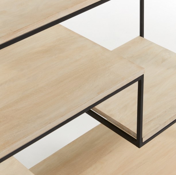 ¿Y que la hace diferente al resto? Su espectacular diseño, formado por una estructura metálica acabada en color negro. Para que tus libros o tus objetos decorativos estén perfectamente colocados, encontramos varios estantes, de tamaños variados, colocados a distintos niveles y diseñados en madera de mango maciza natural.