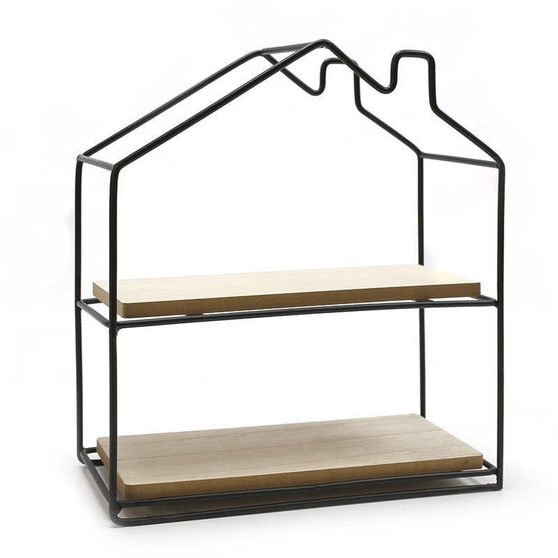 La estantería LITTLE HOUSE nos sorprende con su peculiar forma de casita que combina hierro forjado negro con madera. Genial para la decoración de cualquier estancia de estilo industrial.