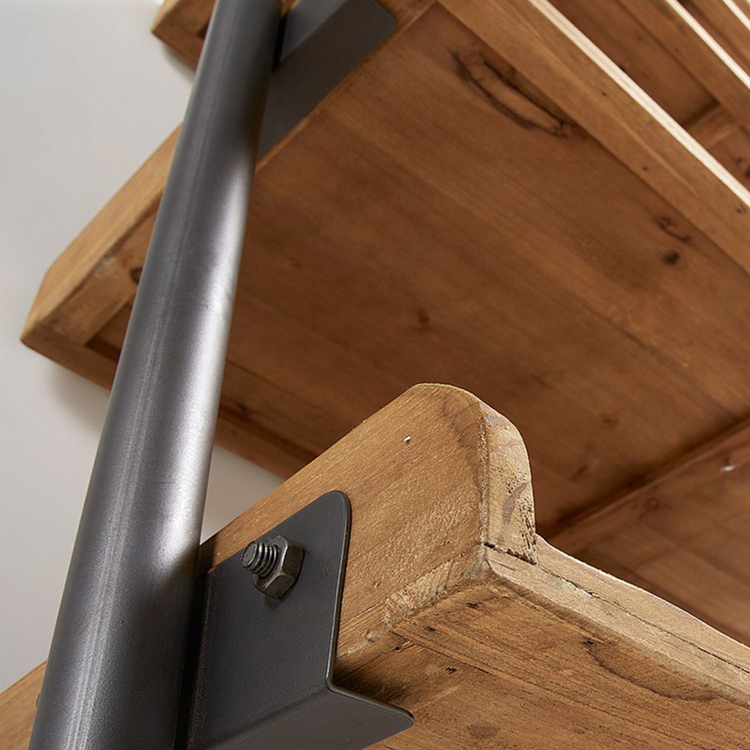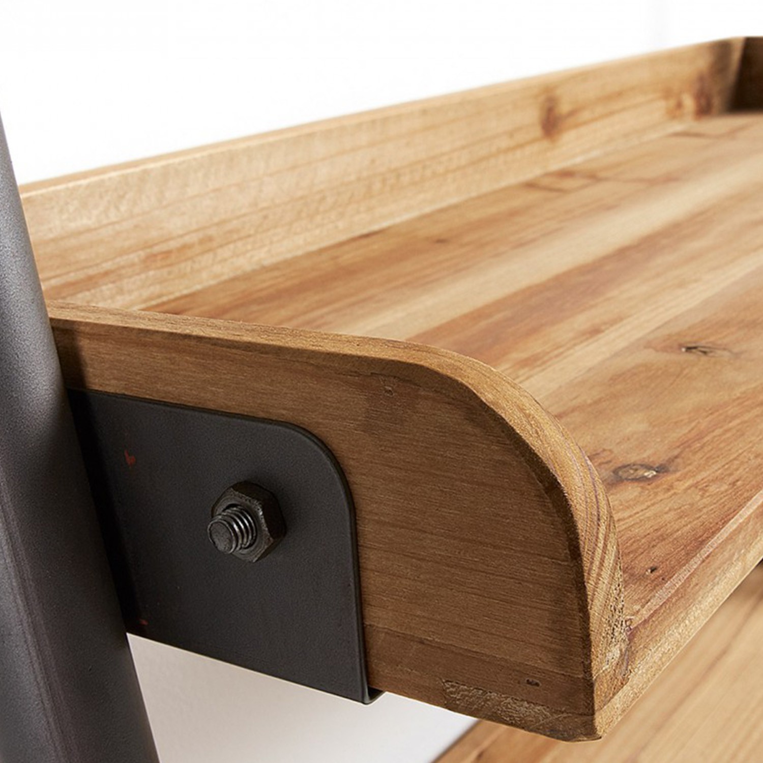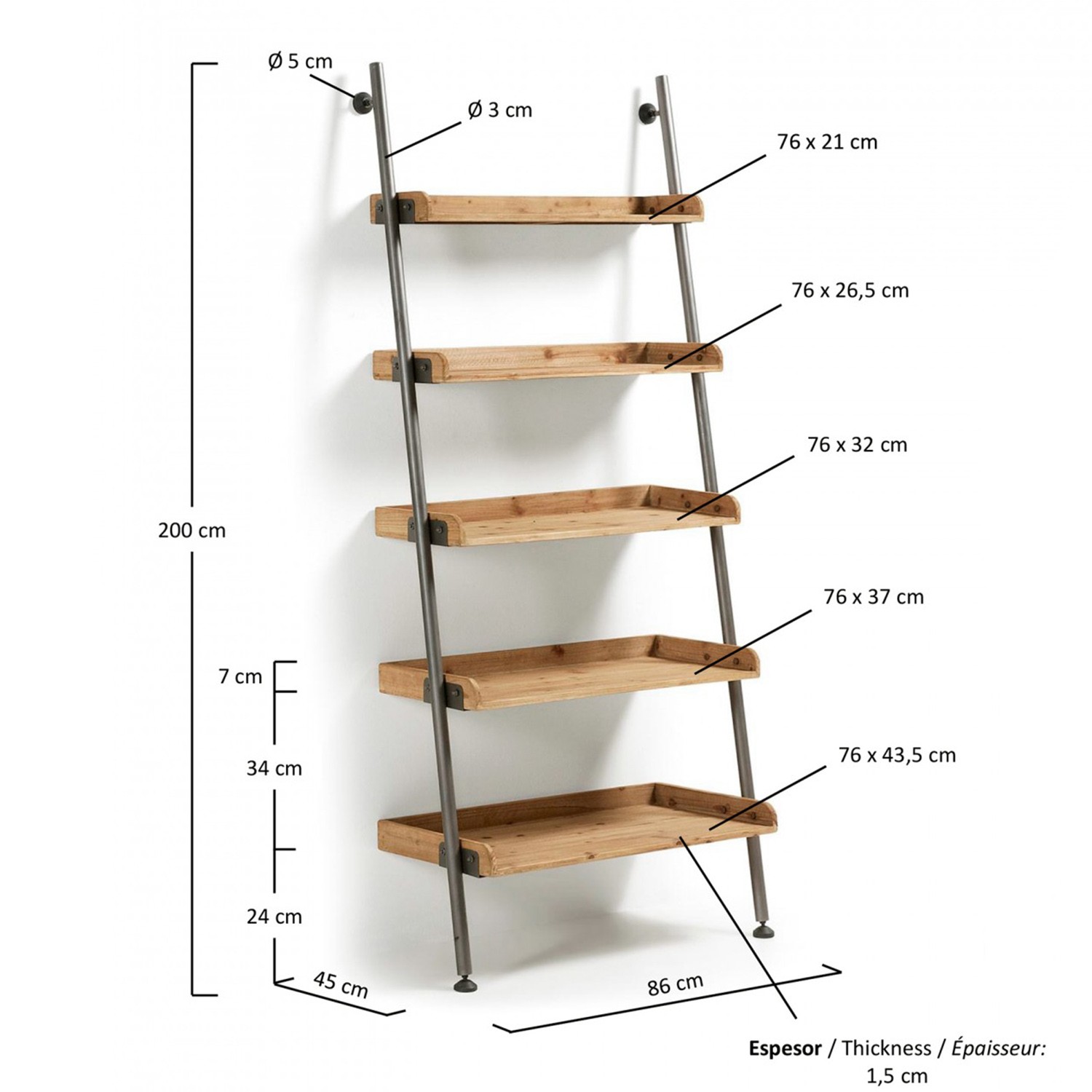 Está diseñada en madera de abeto de forma envejecida y cuenta con cinco estantes. Se sostiene mediante dos pies metálicos en color oscuro que permiten que llegue a alcanzar los dos metros de altura.