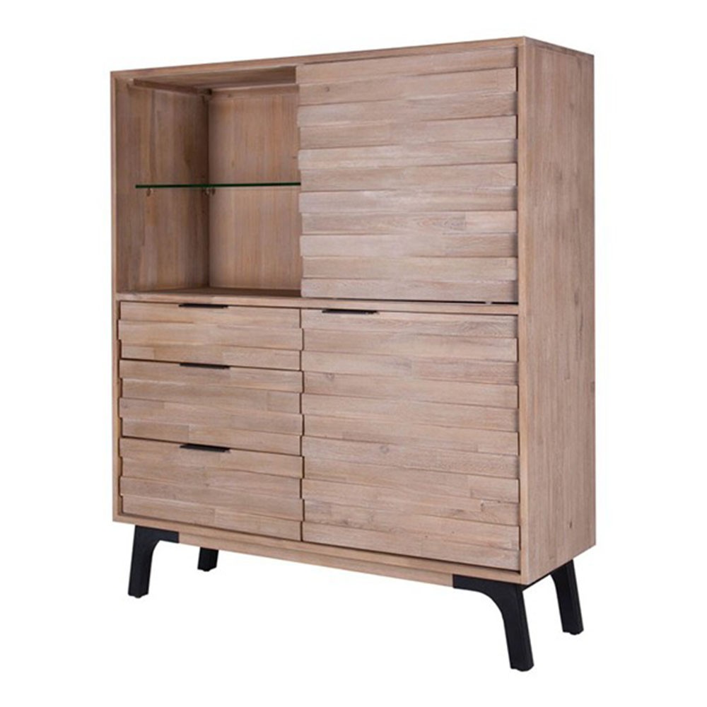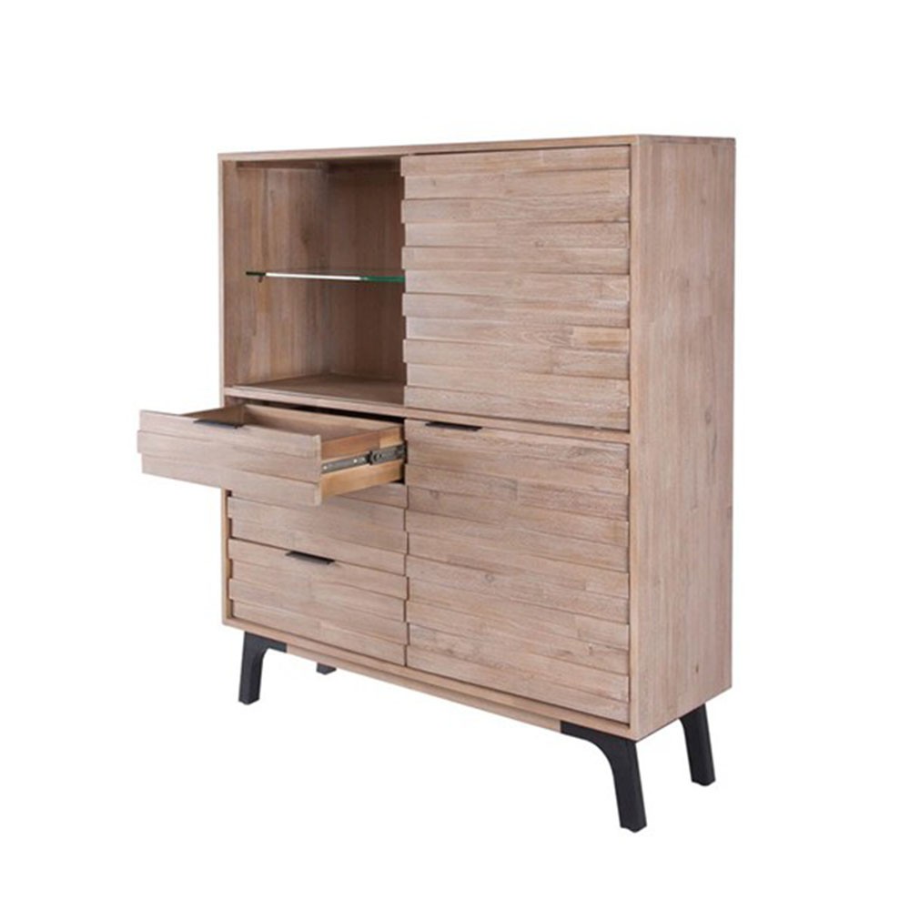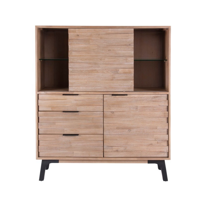 Un producto que, ciertamente nos parece atractivo es la estantería TAKINU. Se trata de un mueble de grandes dimensiones realizado en madera de acacia maciza en acabado natural, a excepción de sus patas, que son metálicas. Dispone de tres cajones, de un amplio espacio separado por un estante de cristal templado tapado por una puerta corredera y será fundamental para mantener el orden en tu hogar.