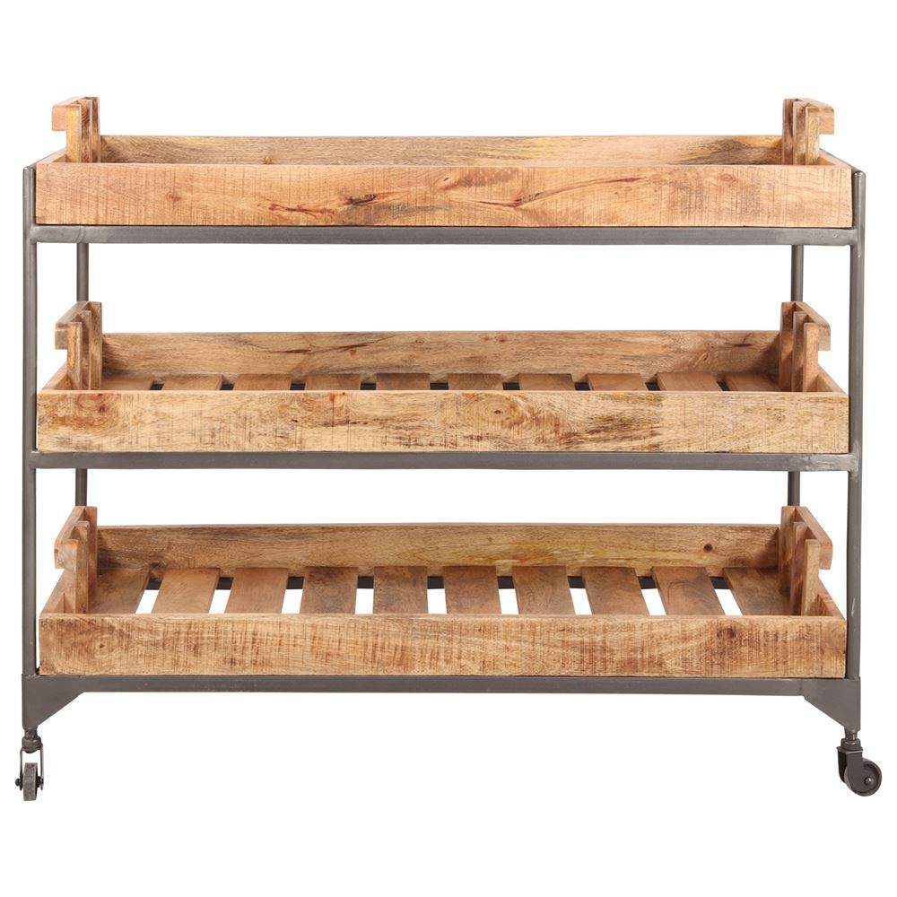 Sus estantes están fabricados en madera de acacia natural, es el complemento perfecto para el salón-comedor de tu hogar, como frutero para tu cocina, para colocar objetos de decoración, plantas o utilizarla de librería, en el recibidor; o por el contrario en tu negocio como expositor de postres, como carro de camarera, en una tienda de decoración, una boutique de moda... Tienes un sin fin de posibilidades, anímate y no lo pienses más, la estantería TUTY es tu mejor opción.
