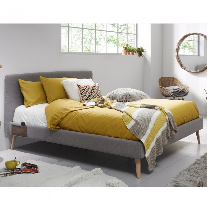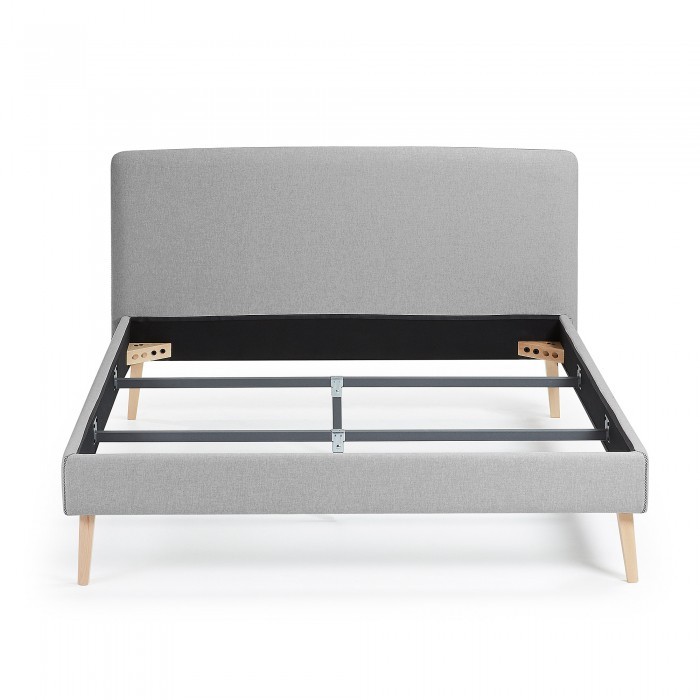 Estructura de cama ROJIM tapizado en tejido de color gris.