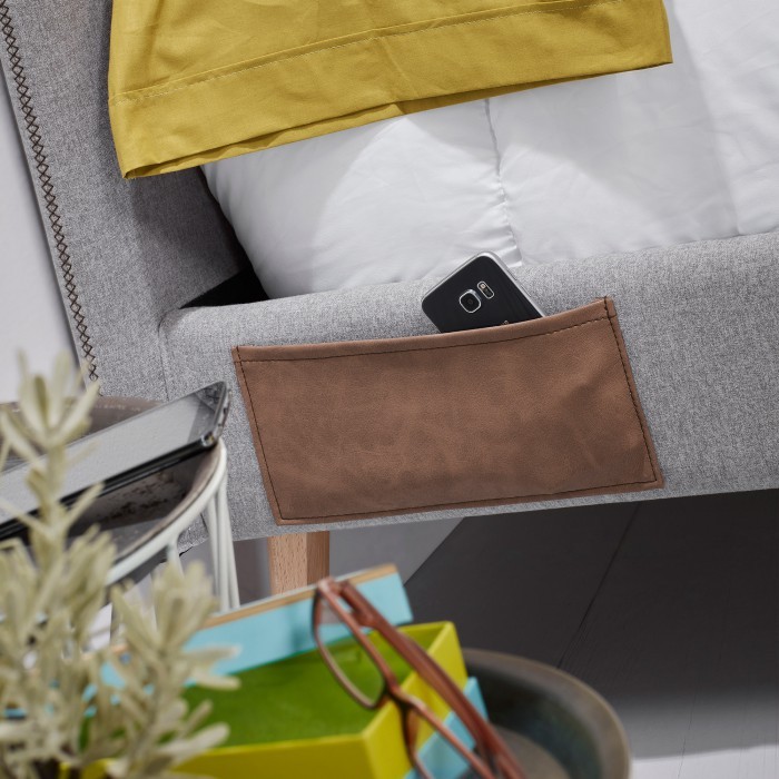 Tapizado en tejido de color gris, y desenfundable en su totalidad, permitiendo lavarlo comodamente en tu hogar, esta estructura está pensada para habitaciones amplias. En ambos laterales incorpora unos bolsillos de tamaño medio, ideal para guardar ciertos objetos personales antes de ir a dormir, como puede ser el teléfono móvil o un libro. Concluye en madera para dar una mayor estabilidad a dicha estructura.
