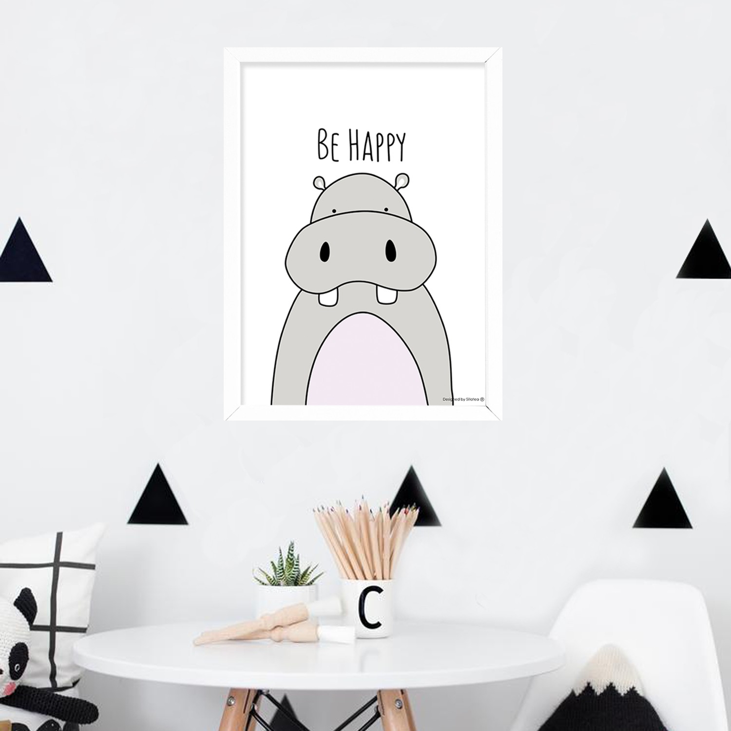 La lámina con marco BABY HYPO está diseñada para colgar en la pared de forma bien sencilla, pero también puedes apoyarlo en estanterías o mesas, puede ser una buena opción como elemento decorativo de sobremesa.