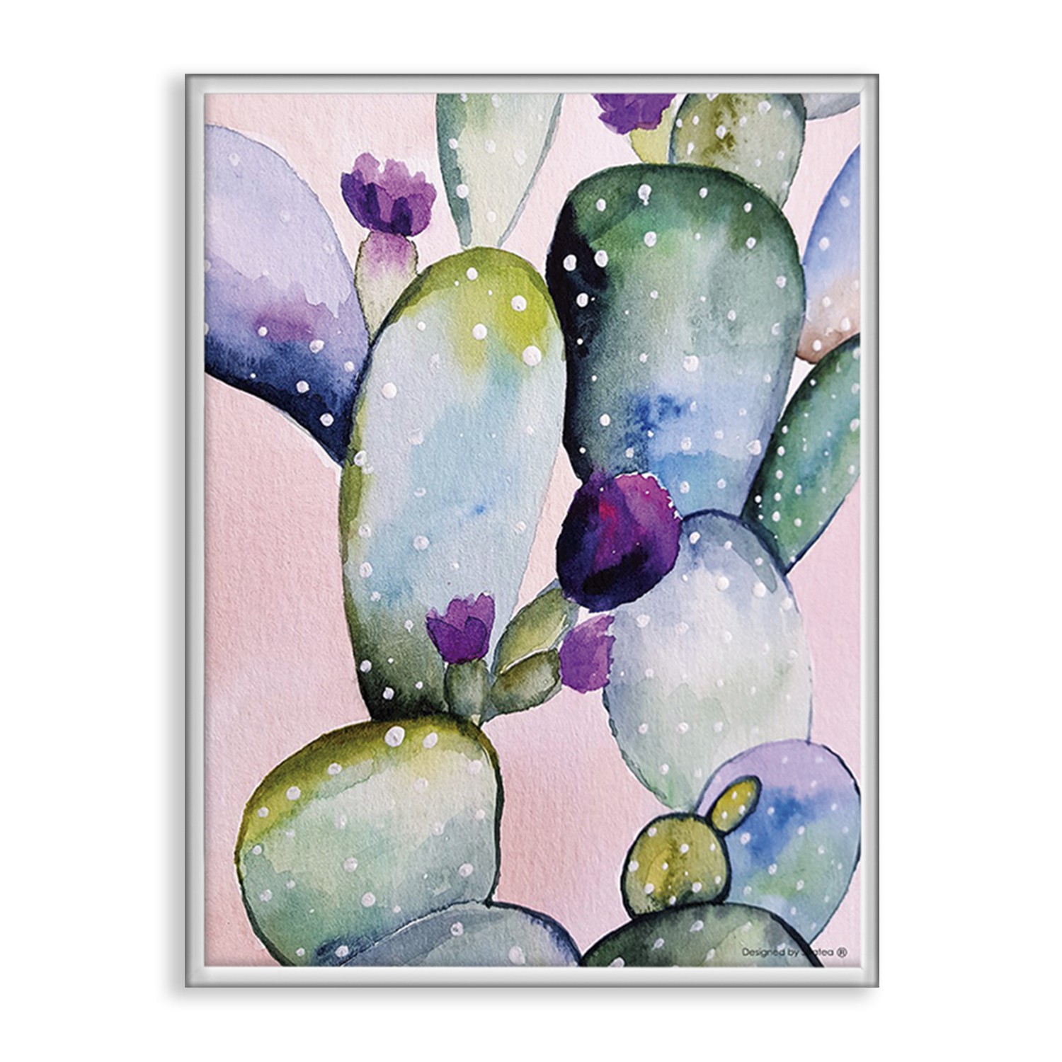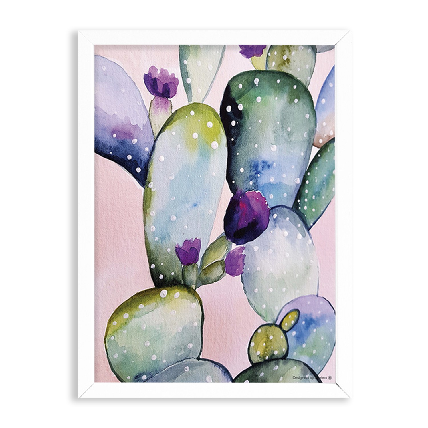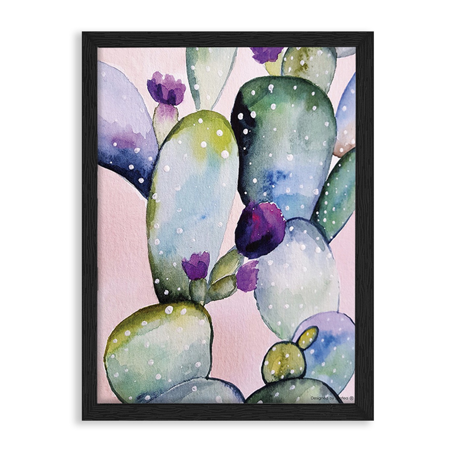 La lámina con marco CACTUS AQUARELLA está diseñada para colgar en la pared de forma bien sencilla, pero también puedes apoyarlo en estanterías o mesas, puede ser una buena opción como elemento decorativo de sobremesa.
