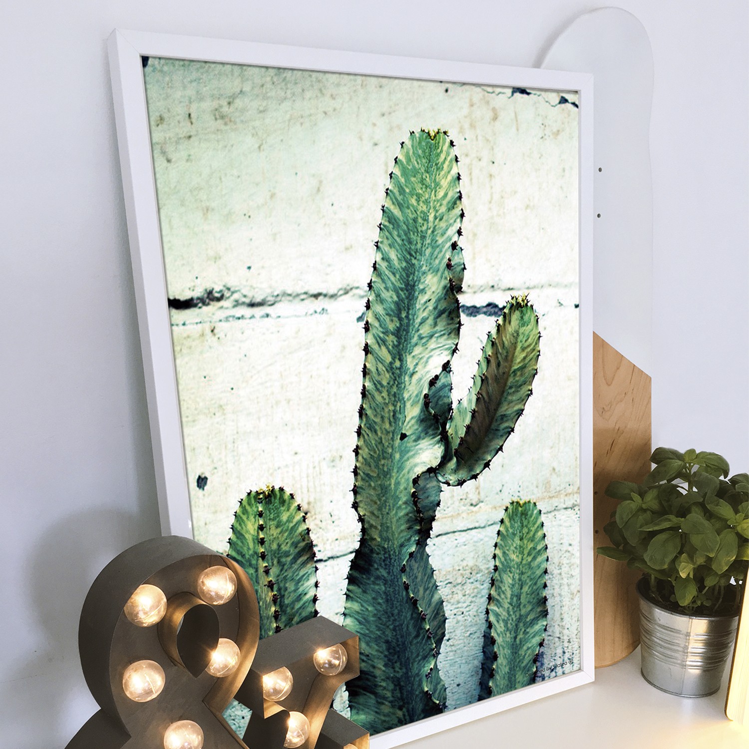 La lámina con marco CACTUS CORDON VINTAGE está diseñada para colgar en la pared de forma bien sencilla, pero también puedes apoyarlo en estanterías o mesas, puede ser una buena opción como elemento decorativo de sobremesa.