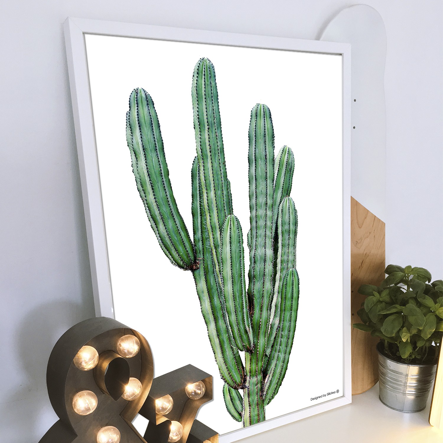 La lámina con marco CACTUS PINCHO está diseñada para colgar en la pared de forma bien sencilla, pero también puedes apoyarlo en estanterías o mesas, puede ser una buena opción como elemento decorativo de sobremesa.