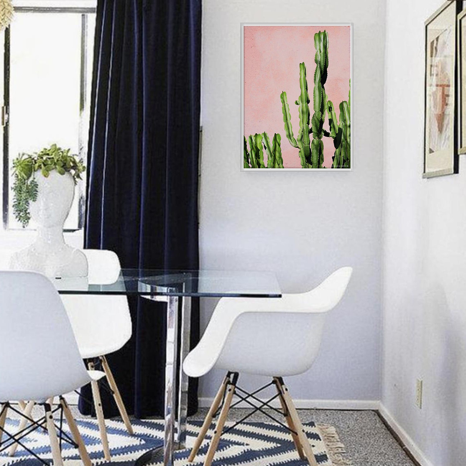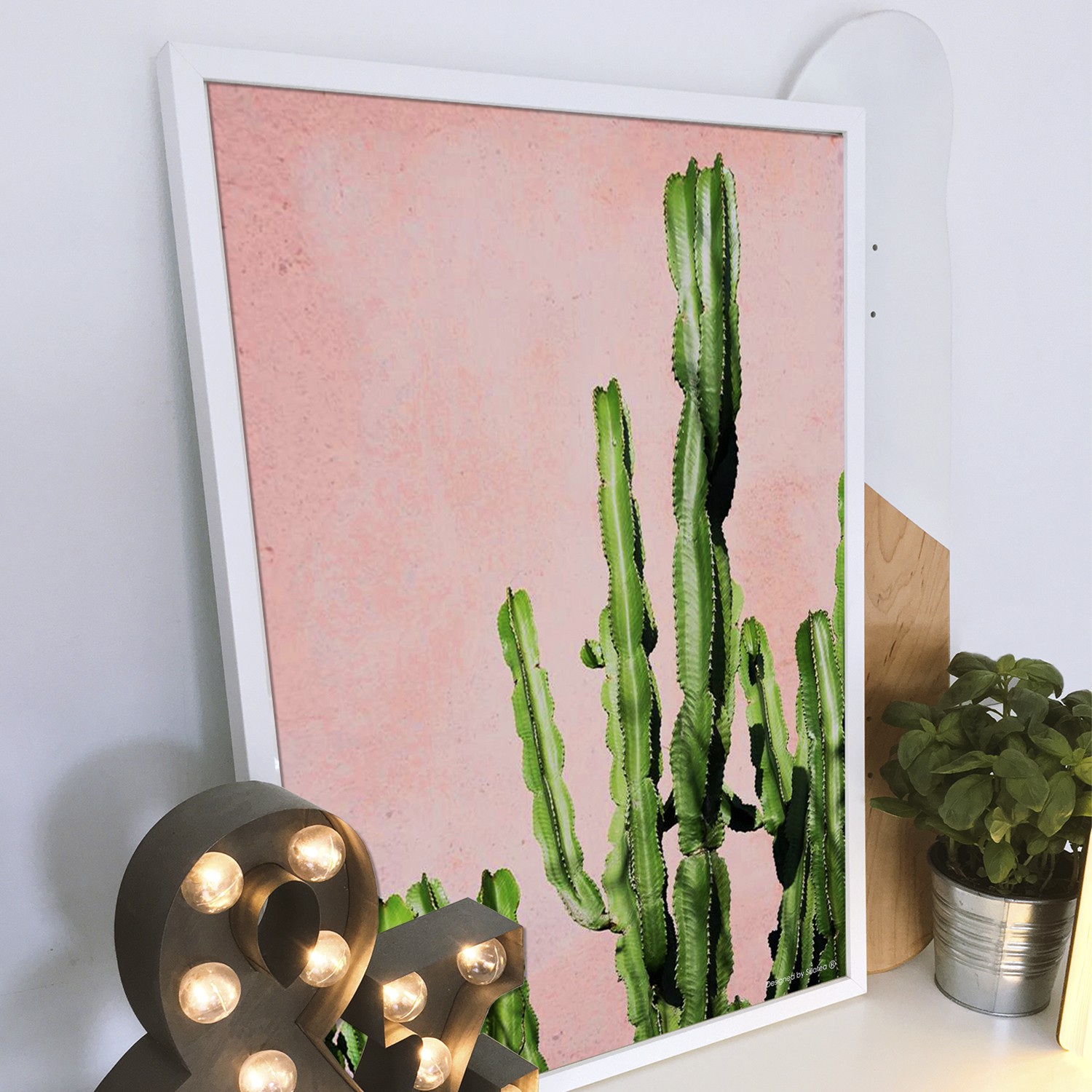 La lámina con marco CACTUS PINK está diseñada para colgar en la pared de forma bien sencilla, pero también puedes apoyarlo en estanterías o mesas, puede ser una buena opción como elemento decorativo de sobremesa.