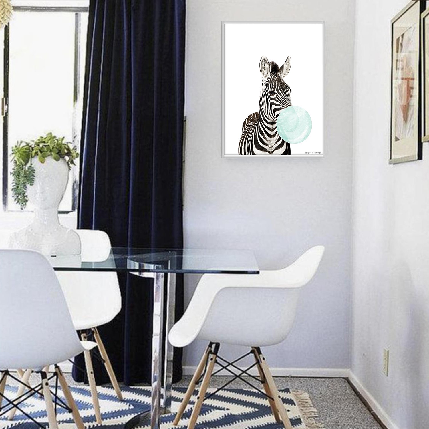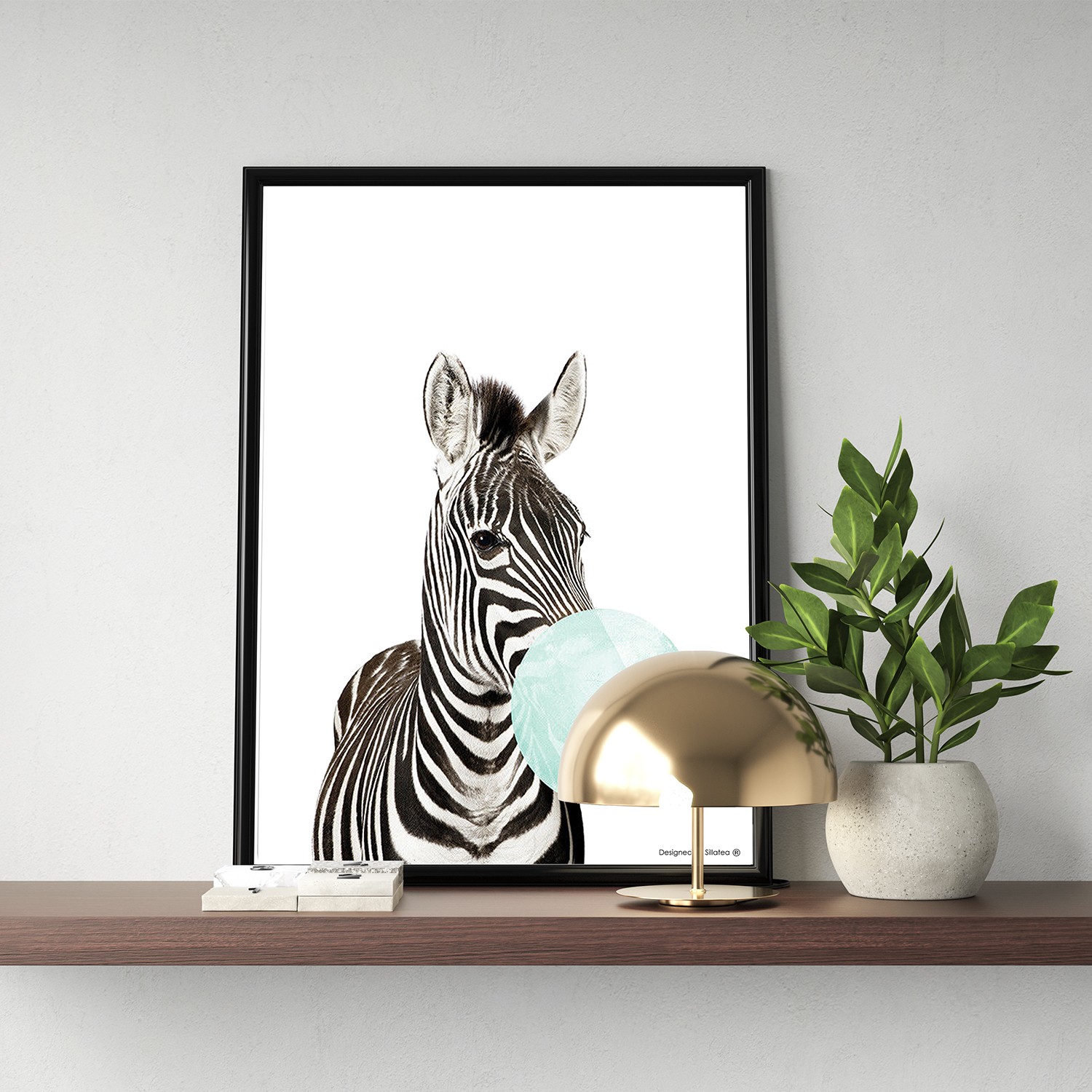 La lámina con marco CEBRA POMPA está diseñada para colgar en la pared de forma bien sencilla, pero también puedes apoyarlo en estanterías o mesas, puede ser una buena opción como elemento decorativo de sobremesa.