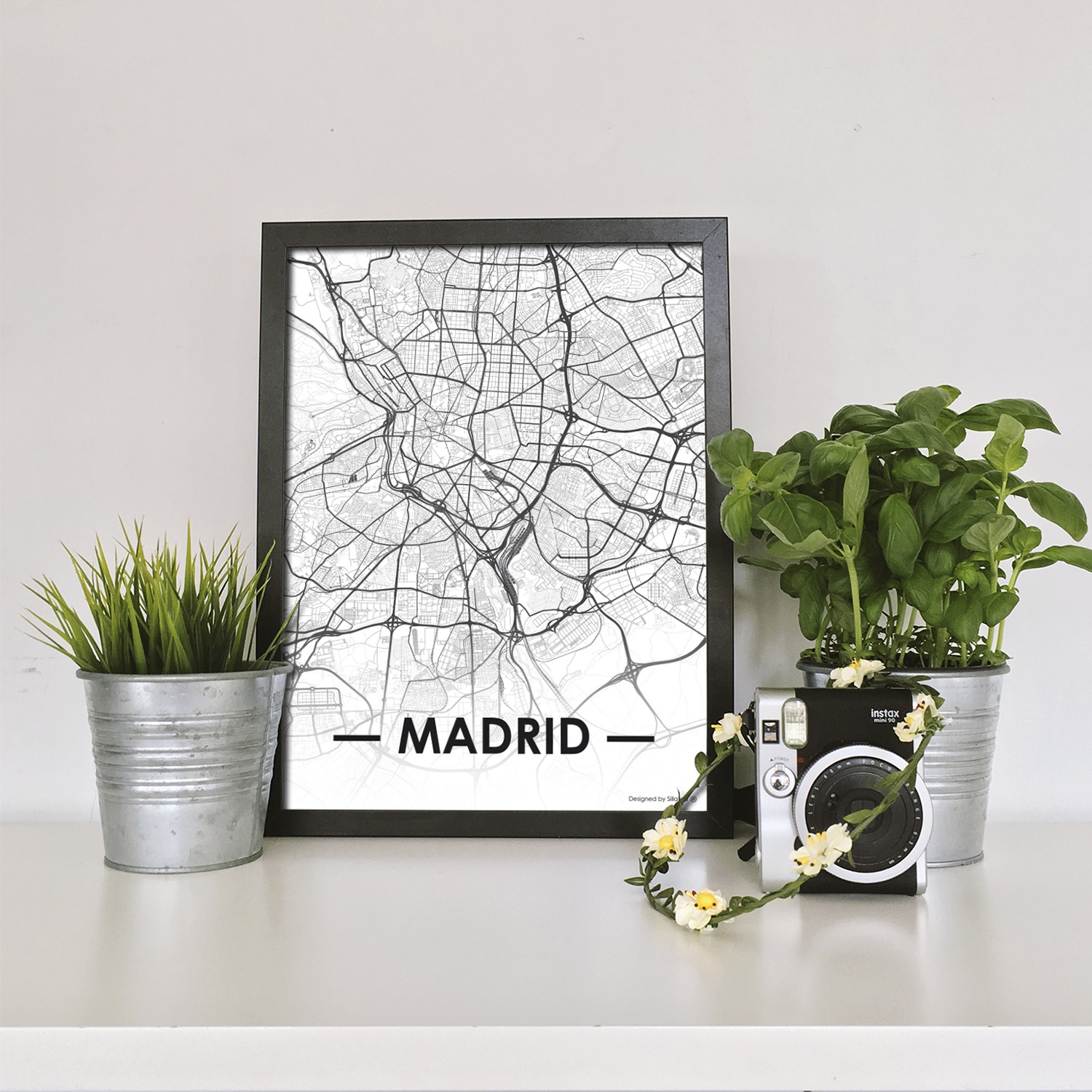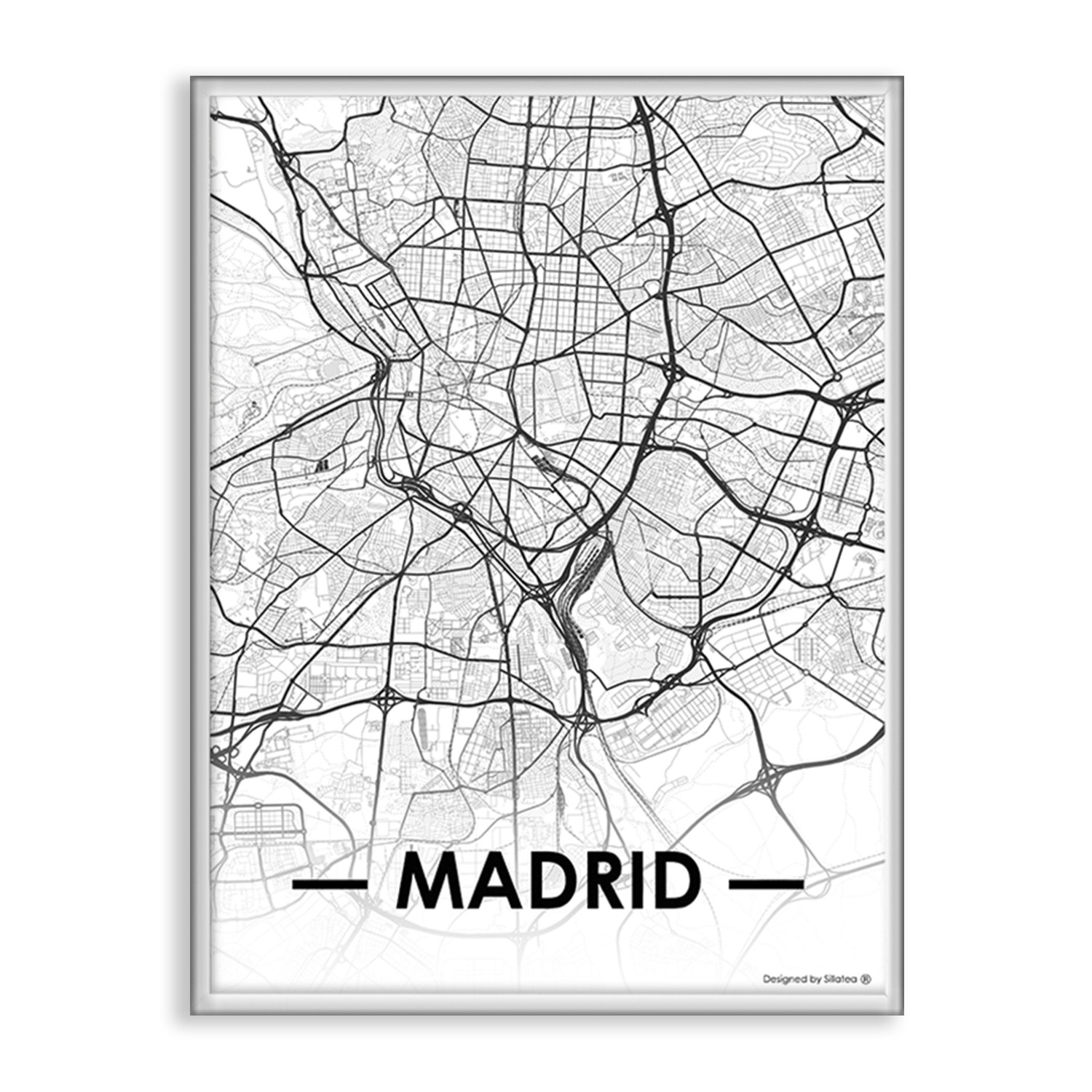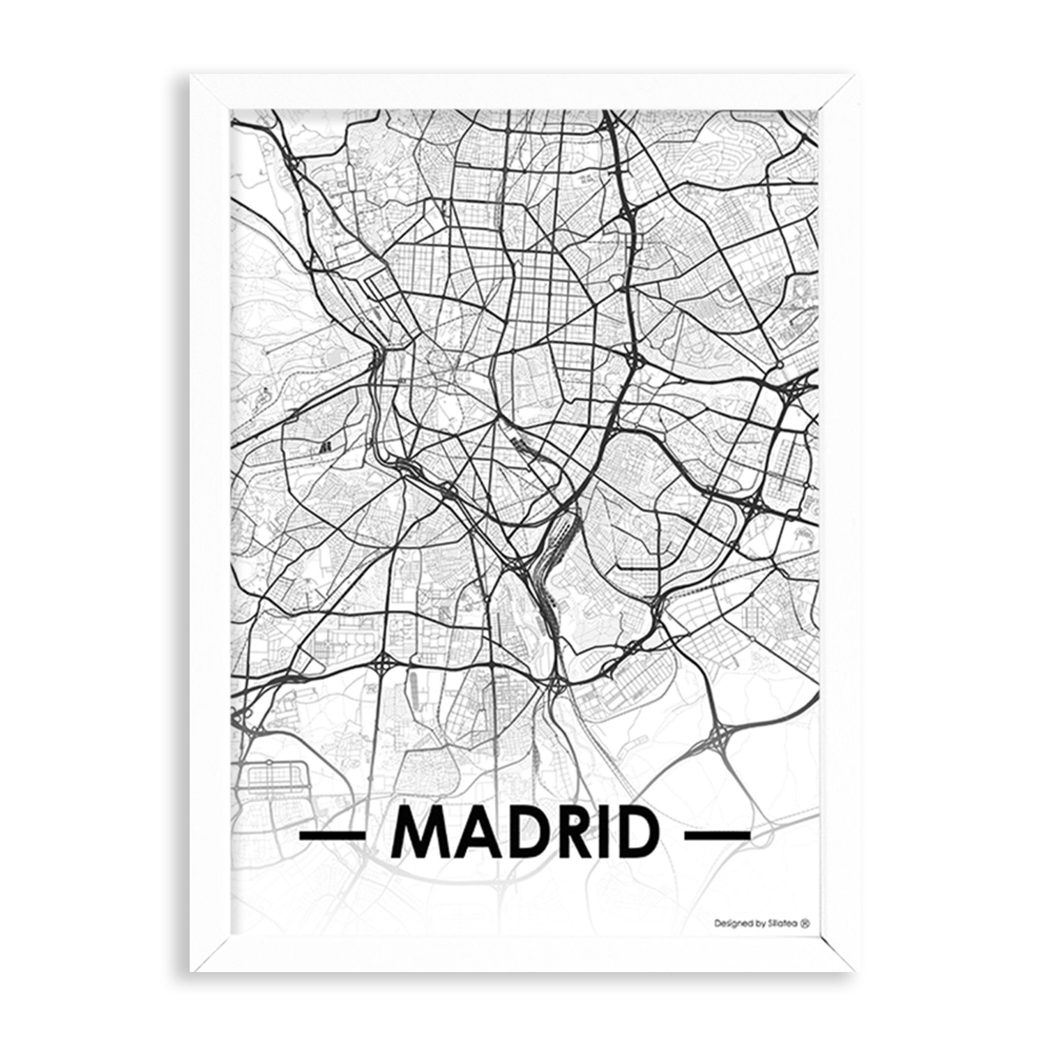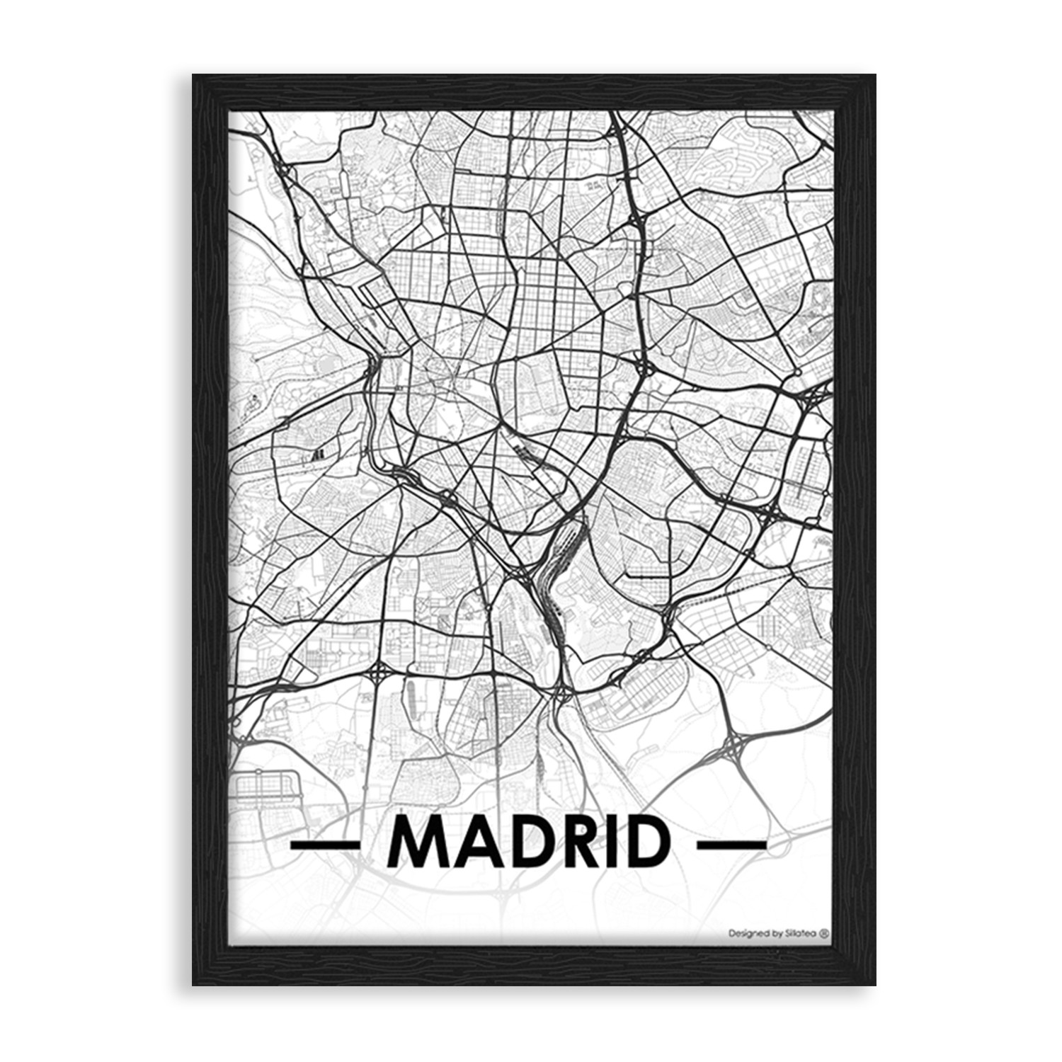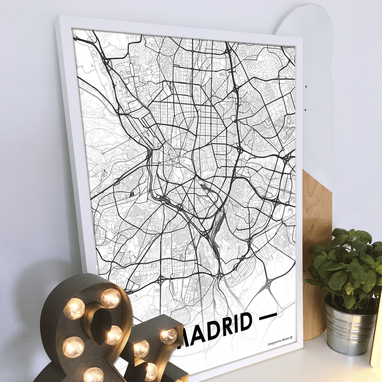 La lámina con marco CITY MAP MADRID está diseñada para colgar en la pared de forma bien sencilla, pero también puedes apoyarlo en estanterías o mesas, puede ser una buena opción como elemento decorativo de sobremesa.