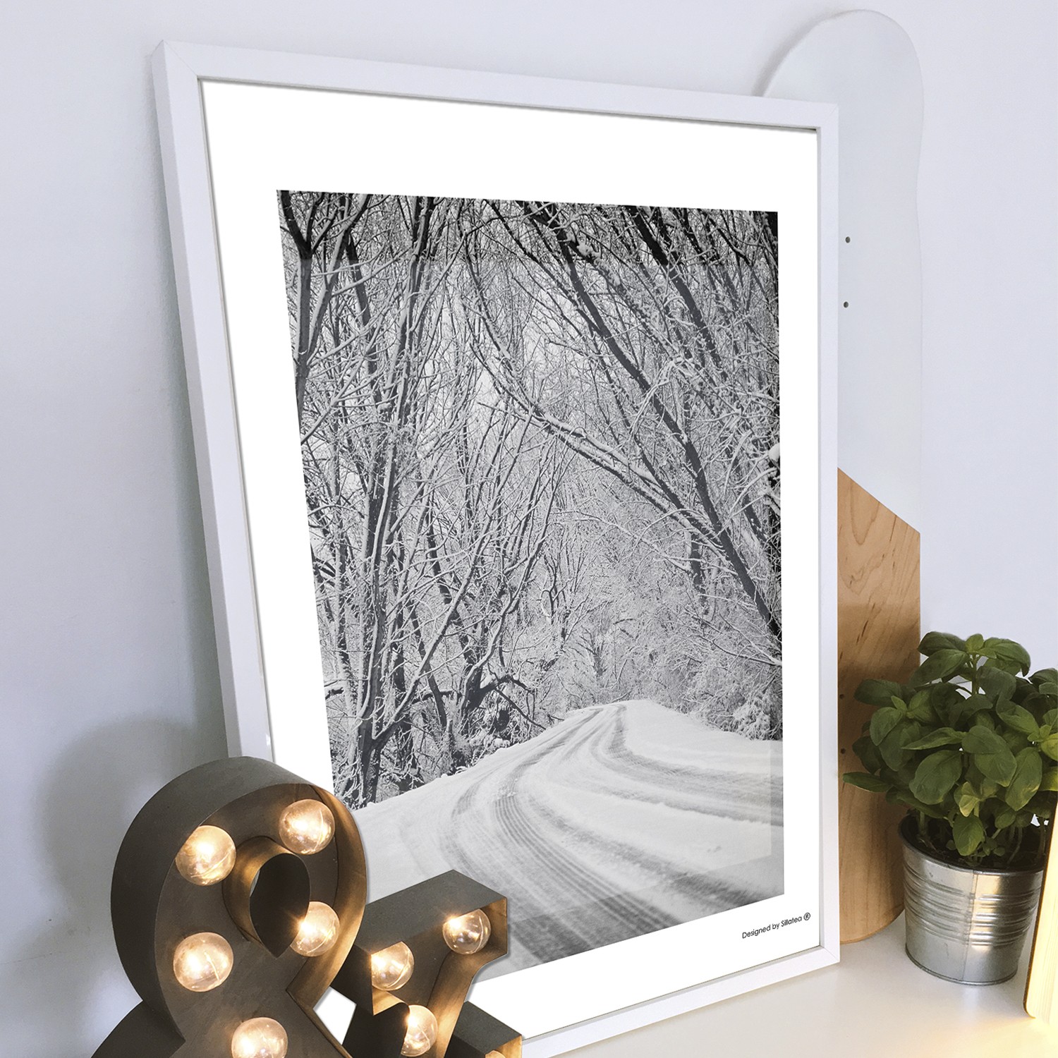 La lámina con marco COLD WINTER está diseñada para colgar en la pared de forma bien sencilla, pero también puedes apoyarlo en estanterías o mesas, puede ser una buena opción como elemento decorativo de sobremesa.