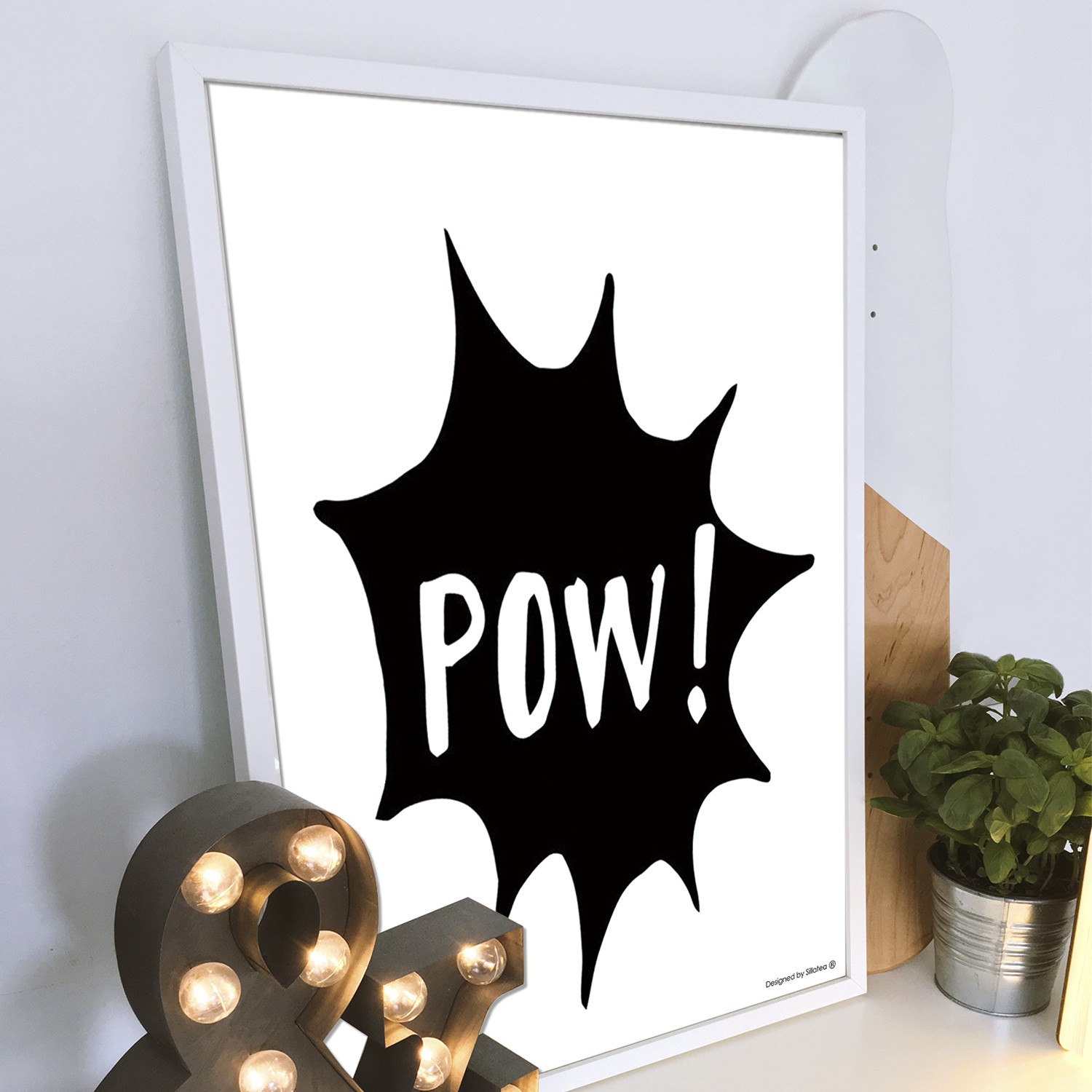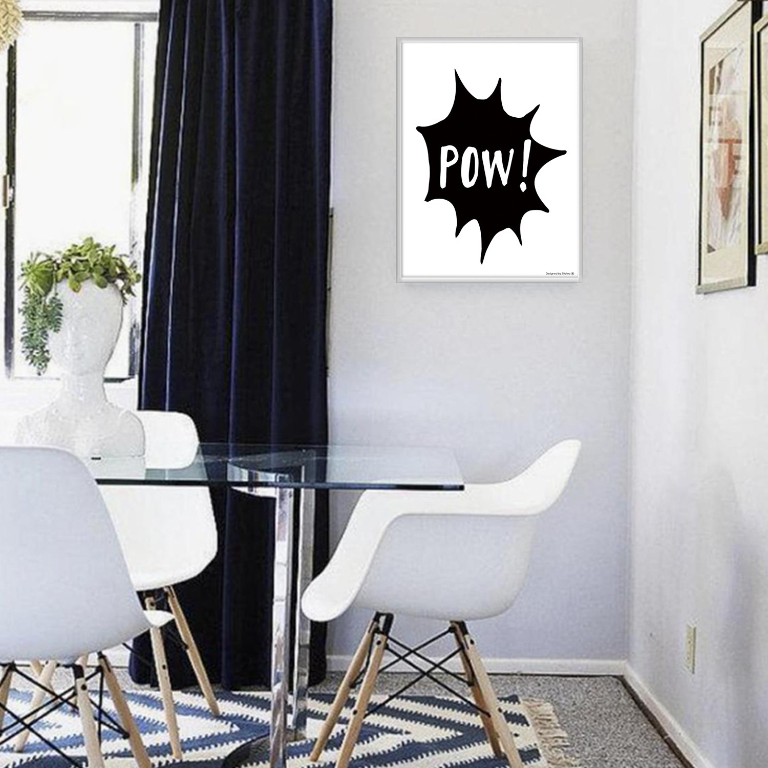La lámina con marco COMIC POW está diseñada para colgar en la pared de forma bien sencilla, pero también puedes apoyarlo en estanterías o mesas, puede ser una buena opción como elemento decorativo de sobremesa.