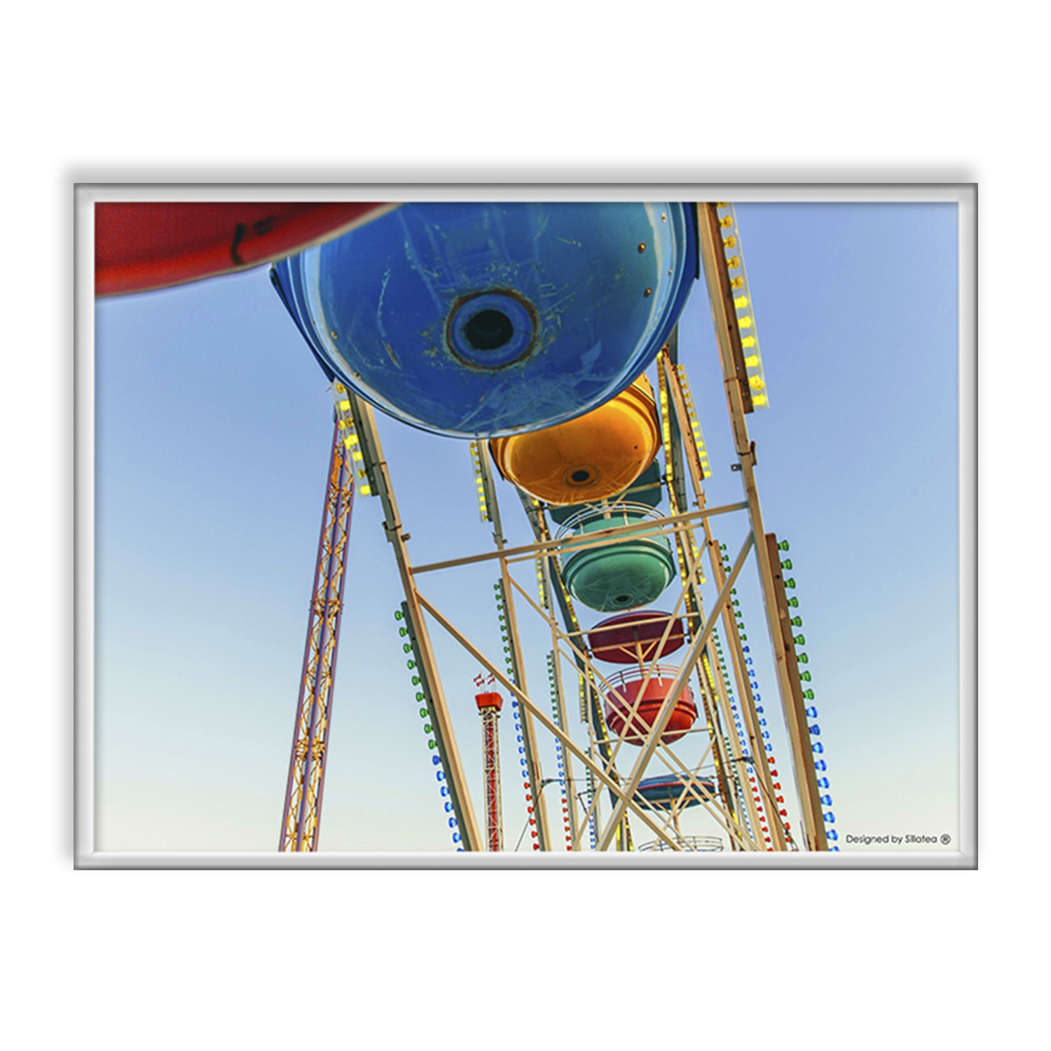 La lámina con marco FERRIS WHEEL está diseñada para colgar en la pared de forma bien sencilla, pero también puedes apoyarlo en estanterías o mesas, puede ser una buena opción como elemento decorativo de sobremesa.